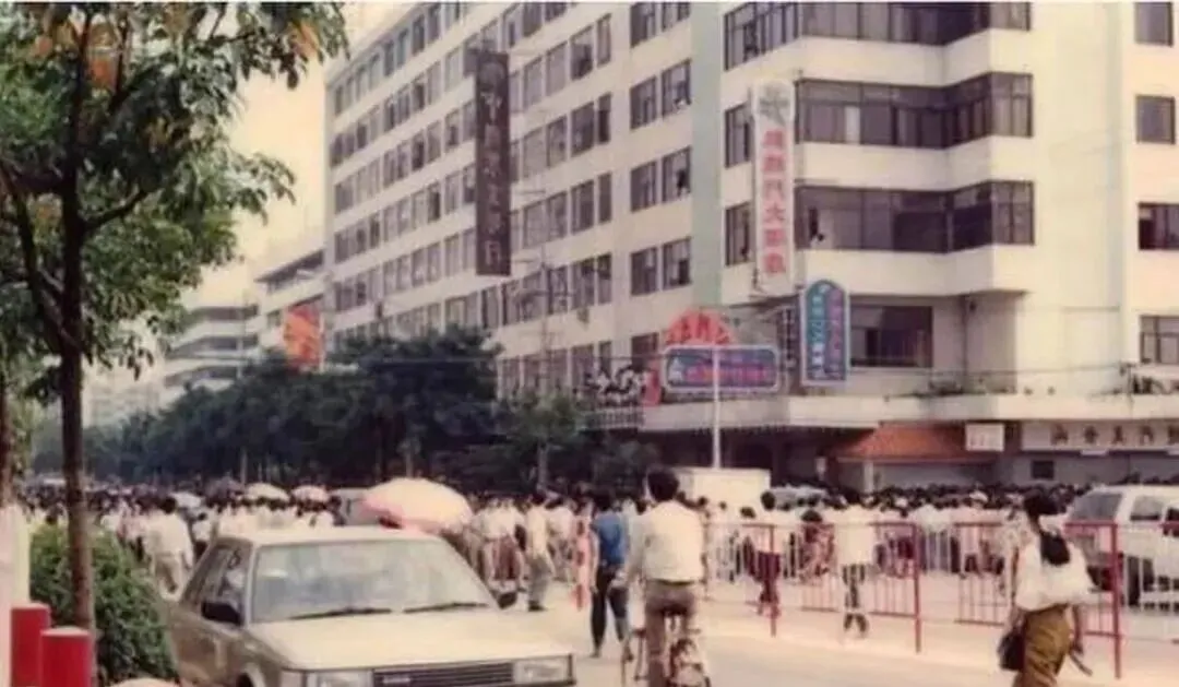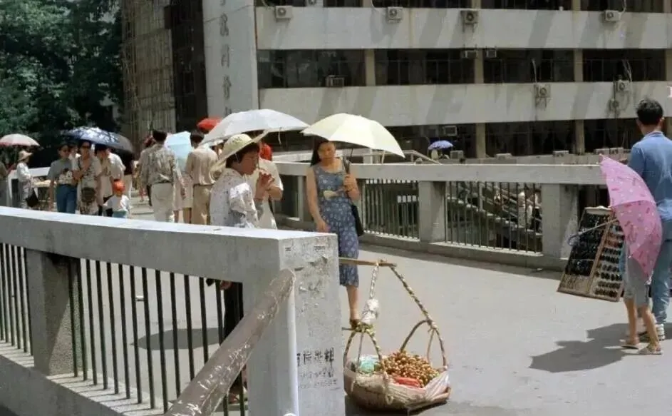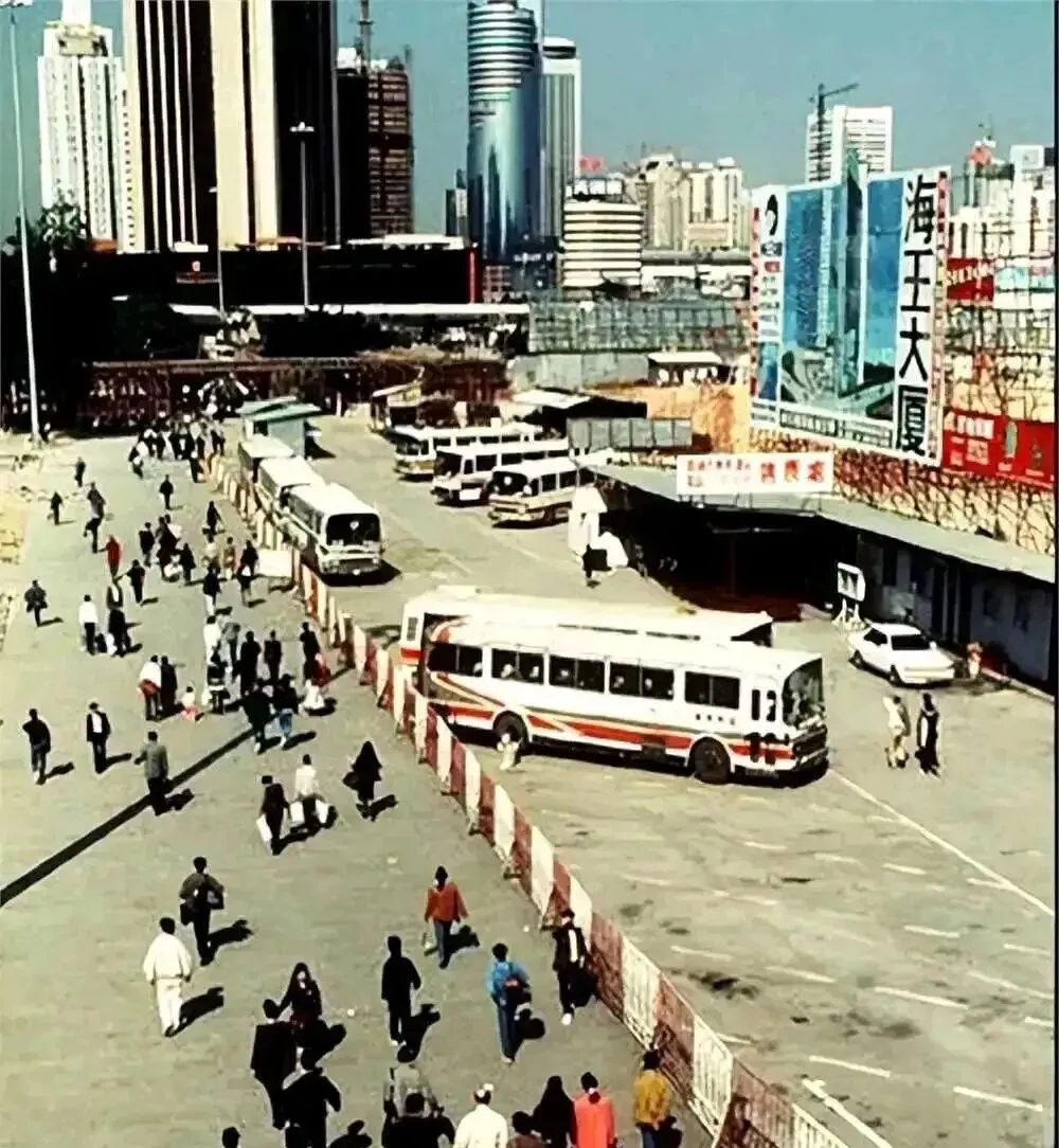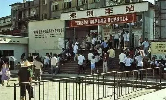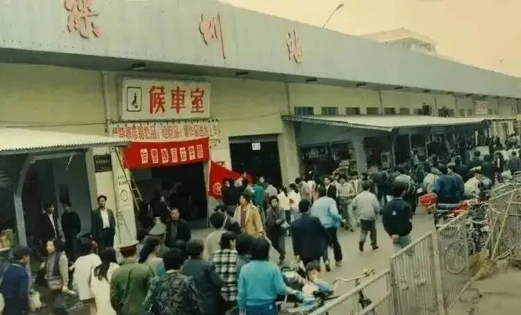 深圳站牌子下,密密一群人拥着往里进,门口铁栅栏和脚踏车排成队,谁家要是拉着孩子去外地,准得在这等老半天,外面小商贩肩膀上扛着箱子卖水,队里的小孩扒着大人的手,没别的心思,就盼早点挤进大厅歇一歇。