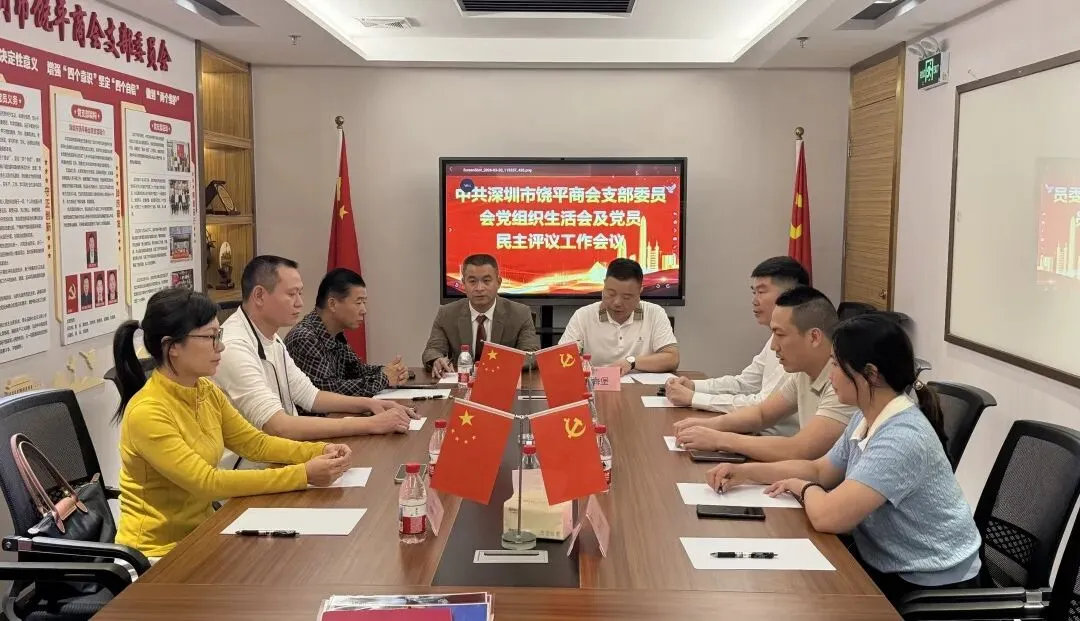 2026年3月30日,深圳市饶平商会党支部在商会会议室组织召开支部委员组织生活会及党员评议工作会议。会议由党支部副书记邱海堡主持,商会会长詹表同志作为支部党员参加会议,支部组织委员詹培生、纪检委员詹伟坚、党员邱云南出席会议。积极分子余喜文、余淑慧、詹晓玲列席会议相关环节。商会常务副会长、罗湖分会会长詹皇流,顾问李昕霖及副会长詹林应邀列席会议。本次会议旨在深入学习贯彻党的最新精神,进一步加强党支部自身建设,提升党员党性修养,推动商会党建工作迈上新台阶。