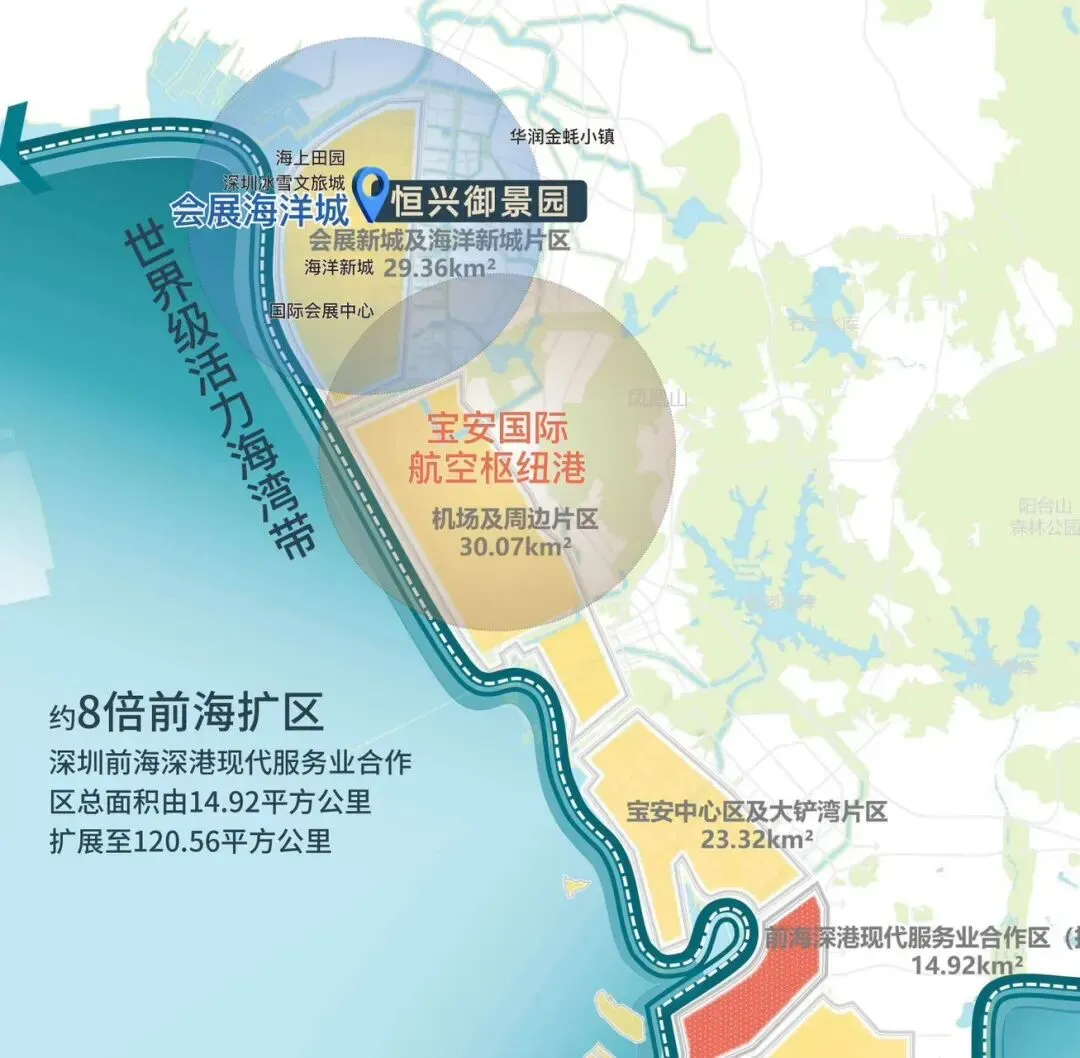 • 前海8倍扩容至120.56平方公里,宝安占据扩容面积三分之二以上,本项目位于前海门户,享一级利好辐射。