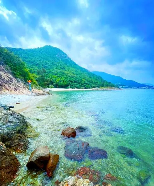 东山珍珠岛在大鹏,是个需要坐船才能到的小岛,光这一点就筛掉了大部分游客,因为很多人嫌麻烦,但正是这种"麻烦",让这个岛保持着原始状态。岛上几乎没什么开发,只有几条自然形成的小路,树林茂密得像原始森林,走在里面能感受到那种与世隔绝的安静,手机信号时有时无,但正好能让你彻底放松下来,不用担心微信消息、工作邮件这些乱七八糟的事。岛上的海水清澈到夸张,站在岸边往下看,能清楚地看到海底的石头和水草,游泳的时候小鱼会在你身边游来游去,完全不怕人,这种体验在其他地方花多少钱都买不到。岛上有几块平整的礁石,适合坐着看海,浪打在礁石上溅起的水花会把你淋湿,但那种凉爽的感觉特别舒服,让你舍不得离开。