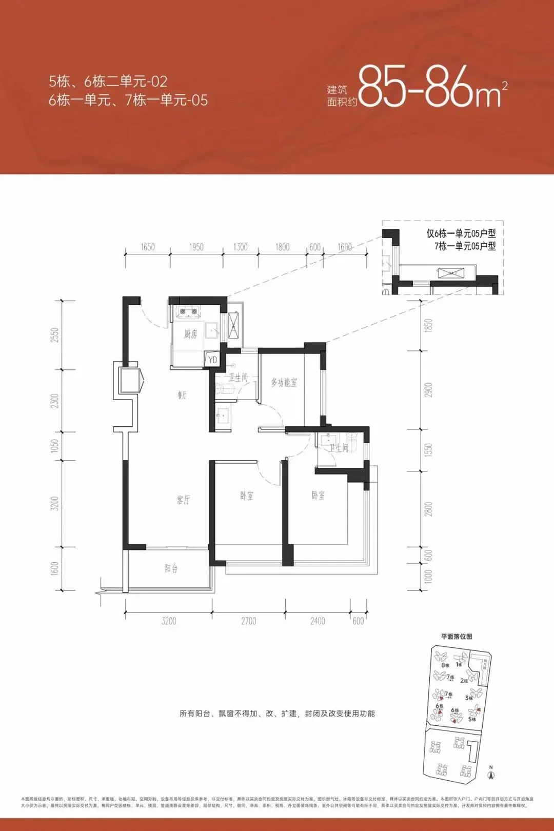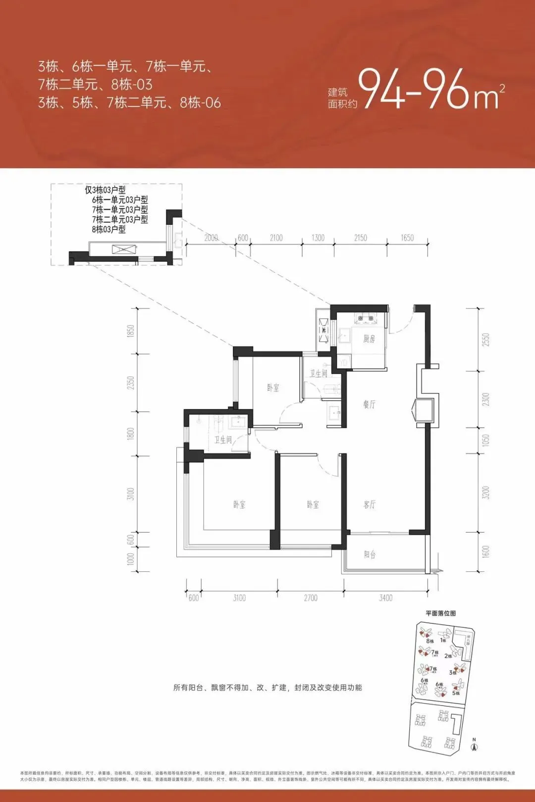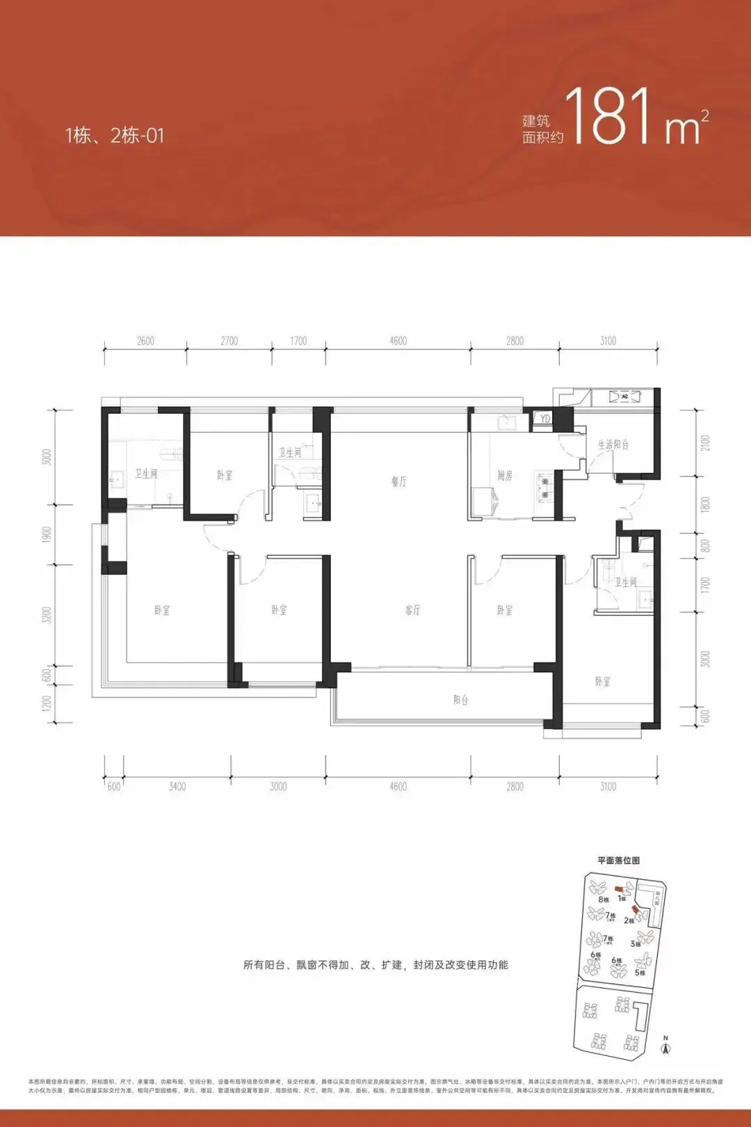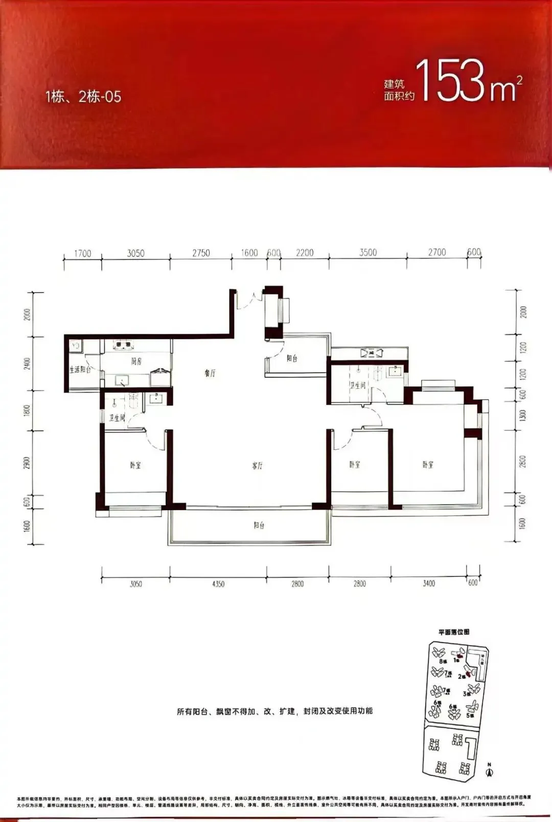 【约153㎡3房2卫(可改3+2房)】户型分布:分布在1栋2朝南跟西南朝向 共80套