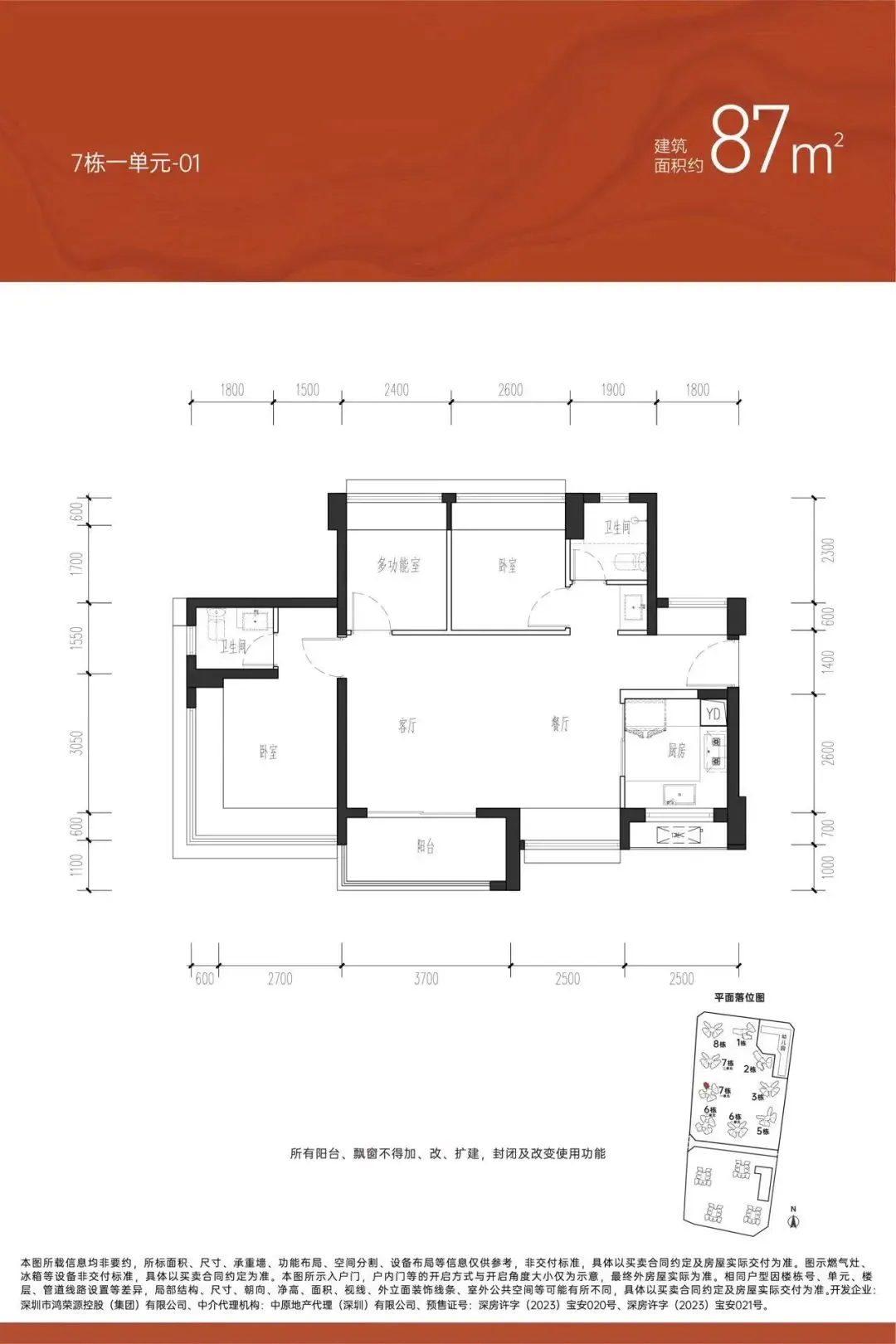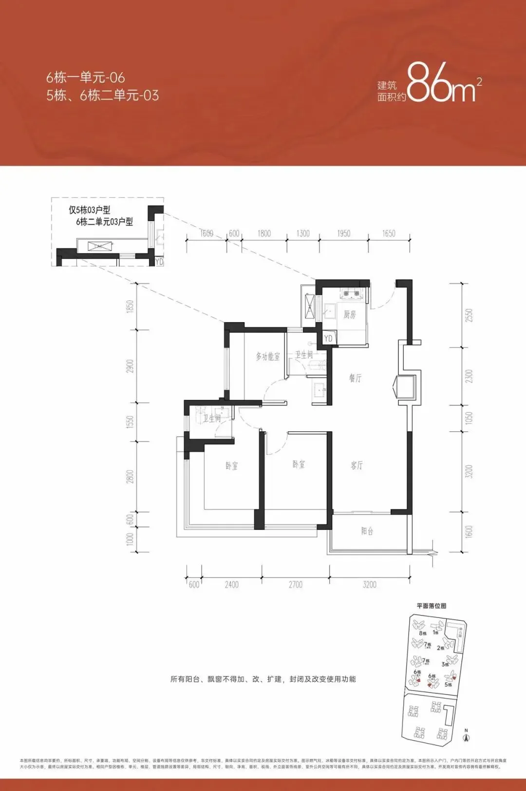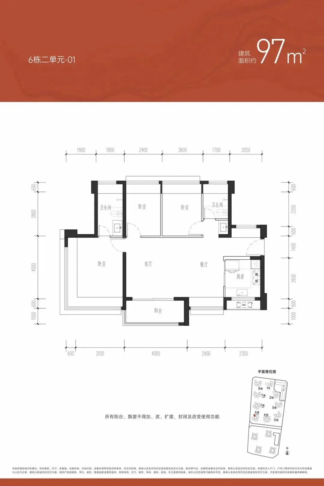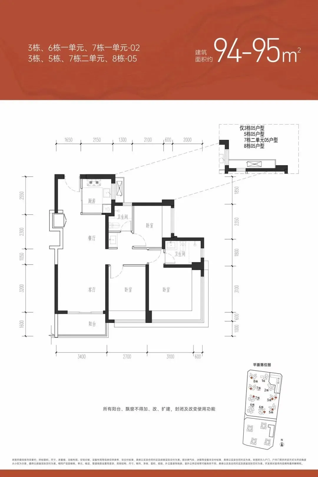 【约153㎡3房2卫(可改3+2房)】户型分布:分布在1栋2朝南跟西南朝向 共80套