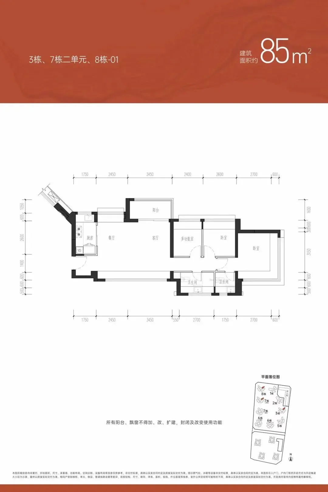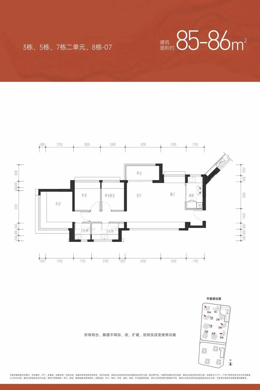 【约85㎡三房两卫】户型分布:分布在7栋2单元、8栋、3栋,共710套,