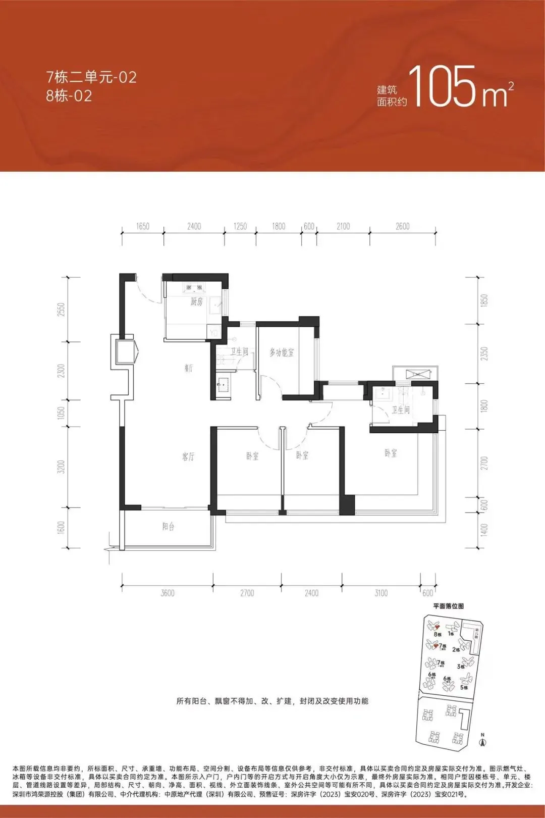 【约105㎡四房两卫】户型分布:分布在7栋2单元、8栋、3栋,共710套,共90套①户型分析:竖厅,改善首选,舒适四房;南向四开间,全景宽角度景观;和市场同类户型相比,总面积更小,实用率及性价比更高;本次的楼王户型,阔绰的双套间设计,层高约3.15米;楼王户型在横厅的基础上,主卧配有L型270度超大飘窗,可俯瞰约3万㎡园林景观;②朝向:东南向③视野:看社区花园社区泳池