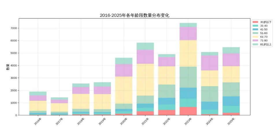 但立嘱的传统主力并未退场。61岁以上老年群体的占比虽有回落,仍居半壁江山。遗嘱不是某个年龄段人群专属,它正在成为全年龄段的工具。