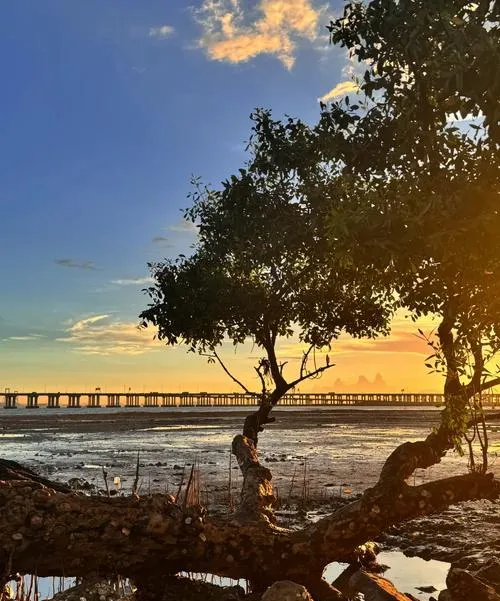 公园沿着海岸线修了很长一段栈道,一边是红树林湿地,一边是海,视野特别开阔,傍晚去最好,能看到飞机起降,夕阳、飞机、海面,这三样东西凑在一起,拍出来就是那种工业美学和自然美学结合的感觉,这才是深圳真正的气质,不是单纯的自然,也不是单纯的城市,是两者融合在一起的状态,而且因为人少,你可以在那待很久,不用担心打扰别人,也不会被别人打扰。