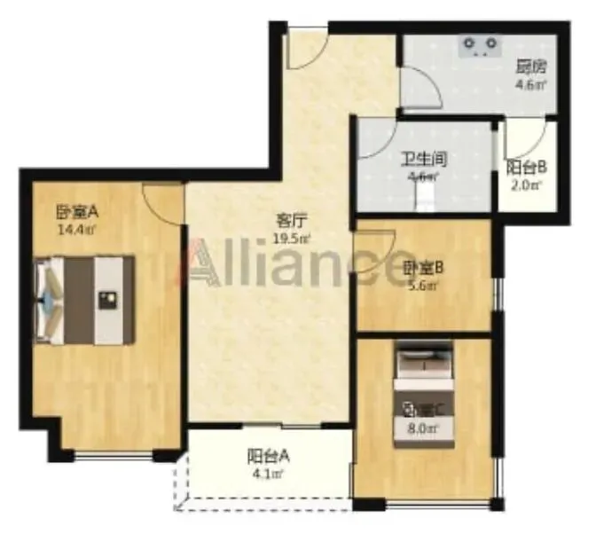 三室两厅一厨一卫一阳台
