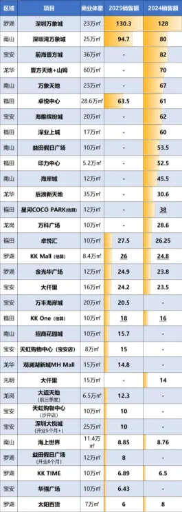 你发现没?排前面的全是“万象”、“壹方”、“卓悦”、“海岸城”这些本土派。什么万达、K11,在深圳都得先叫声“大哥”。不过宝安那个大悦城今年挺猛,听说要冲20亿。还有传说中的“太古里”,大伙儿都盯着呢。