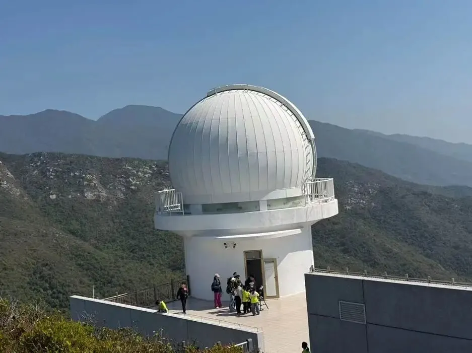 我们从市区驱车一个半小时来到天文台所在的山脚下,盘山公路蜿蜒而上,车窗外绿意渐浓。当山顶那座洁白醒目的圆顶建筑跃入眼帘时,孩子们立刻兴奋起来。得知圆顶内安放着太阳望远镜,孩子们的目光中满是期待,
