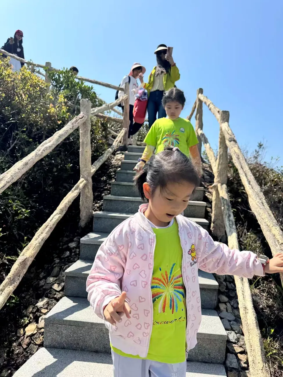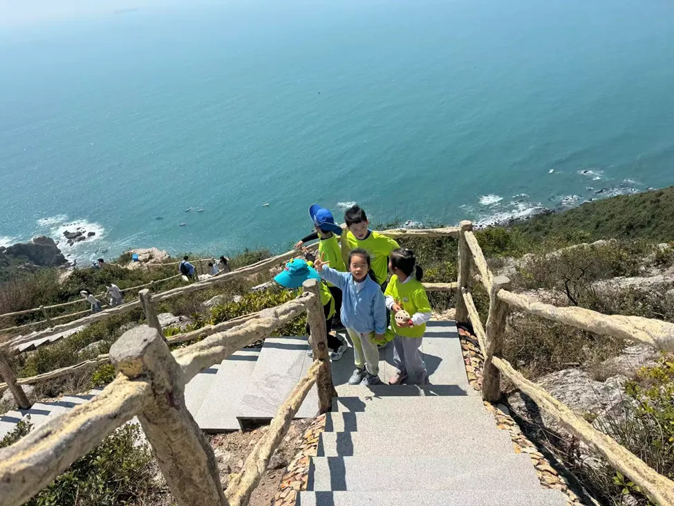 听完老师精彩的讲解,我们的队伍沿着栈道继续向被誉为“中国八大最美海岸线之一”的海岸线进发。栈道上游人络绎不绝,而孩子们始终保持着良好的秩序,主动避让行人,不追逐、不打闹,听从指引,让家长们既能放心陪伴孩子,也能驻足欣赏海天一色的美景。