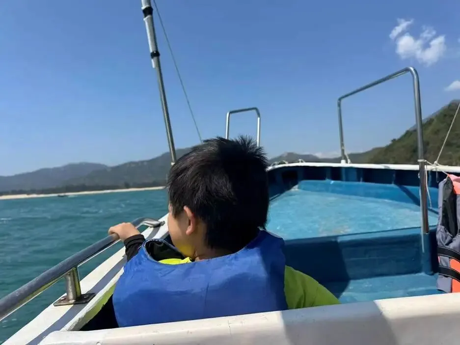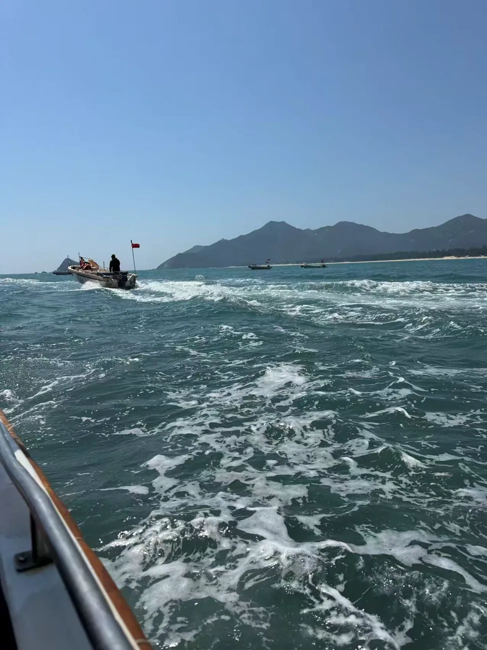大家乘坐快艇返回西涌沙滩。快艇在海面上飞驰,随着海浪起伏,时而仿佛腾空而起,时而又贴近海面。