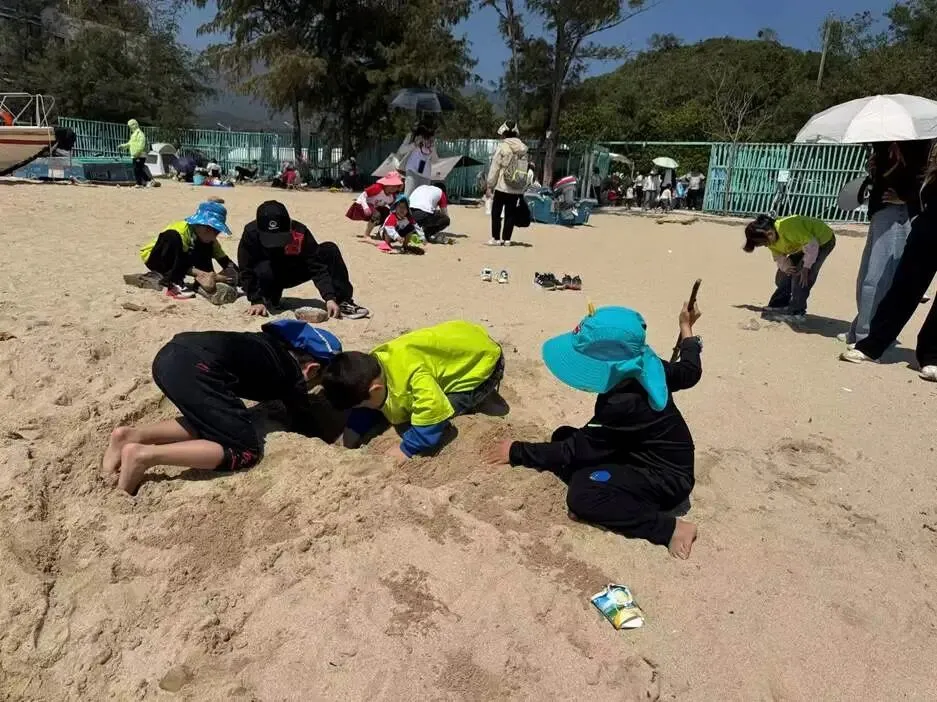 抵达4号海滩后,孩子们立刻投入沙滩的怀抱:堆城堡、挖地道、尽情玩耍。