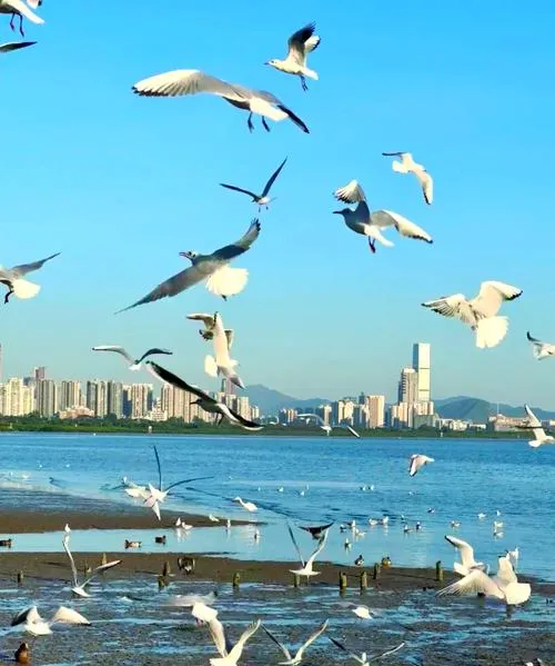这个地方最特别的是,它让你重新理解了什么叫城市里的生态,你站在栈道上,一边是高楼大厦,一边是自然湿地,候鸟在这里停留,鱼在这里生活,这种共存的状态,在其他城市很少见到,而且这里的日落特别好看,不是那种必须用滤镜才好看的日落,是真的太阳落下去的时候,天空的颜色会一层一层变化,你坐在那,就能看完整个过程。