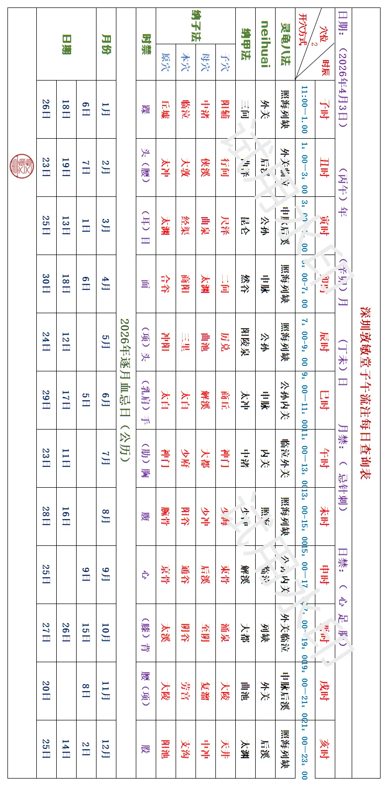 深圳敦敏堂《子午流注:今日开穴》 2026 4月3日