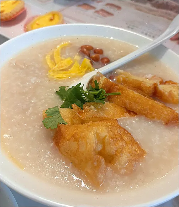 艇仔粥:花生、鱼片、鱿鱼、咸蛋一起下场,深夜吃最对。