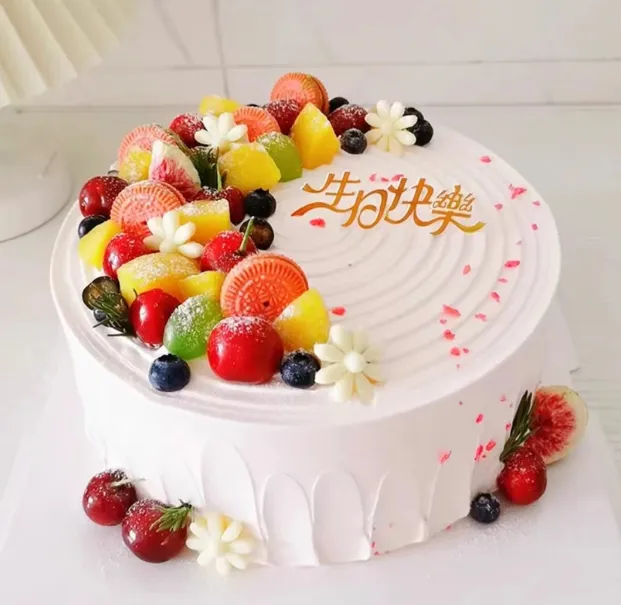 蛋糕胚选用的是优质的面粉,经过精心配比和烘焙,口感松软细腻,带着淡淡的麦香,就像小时候妈妈亲手做的蛋糕,充满了家的温暖。奶油则选用动物奶油,它天然健康,不含反式脂肪酸,入口即化,细腻丝滑的口感如同云朵般轻盈,每一口都能感受到大自然的馈赠。水果都是当天新鲜采购的,草莓清甜多汁,芒果浓郁香甜,蓝莓酸甜可口……它们不仅为蛋糕增添了丰富的色彩,更带来了清新的果香,让蛋糕的口感层次更加丰富。