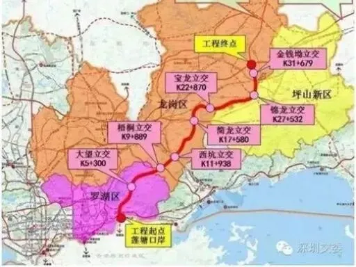 城市东进大动脉:疏解罗湖、福田、龙岗、坪山之间的城市内部交通,分流深汕、惠盐高速货运压力。