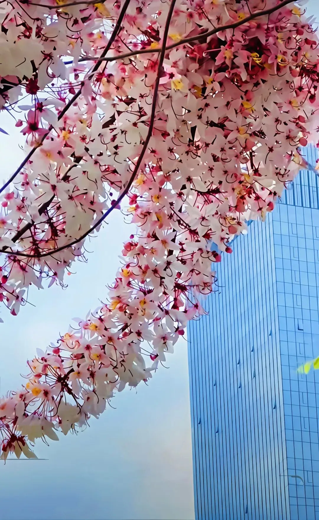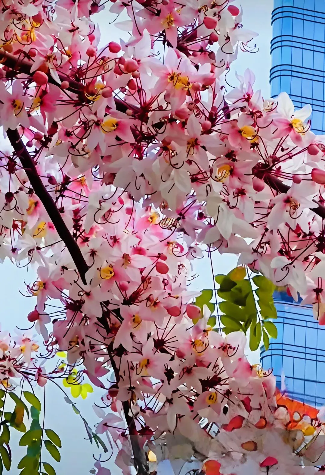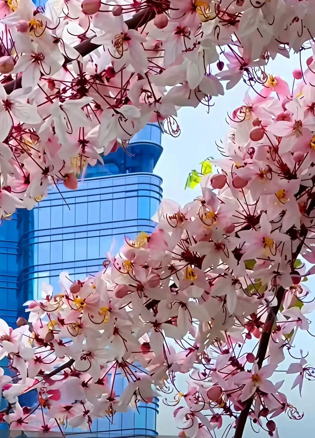 与蓝天、城市楼宇构成绝妙反差,随手一拍就像电影同款场景。