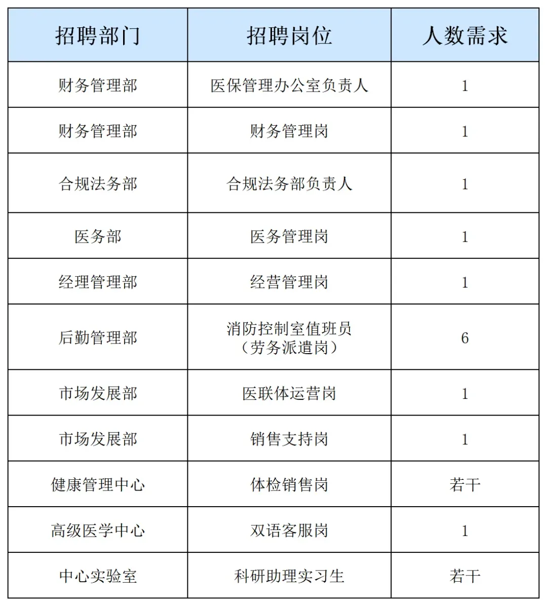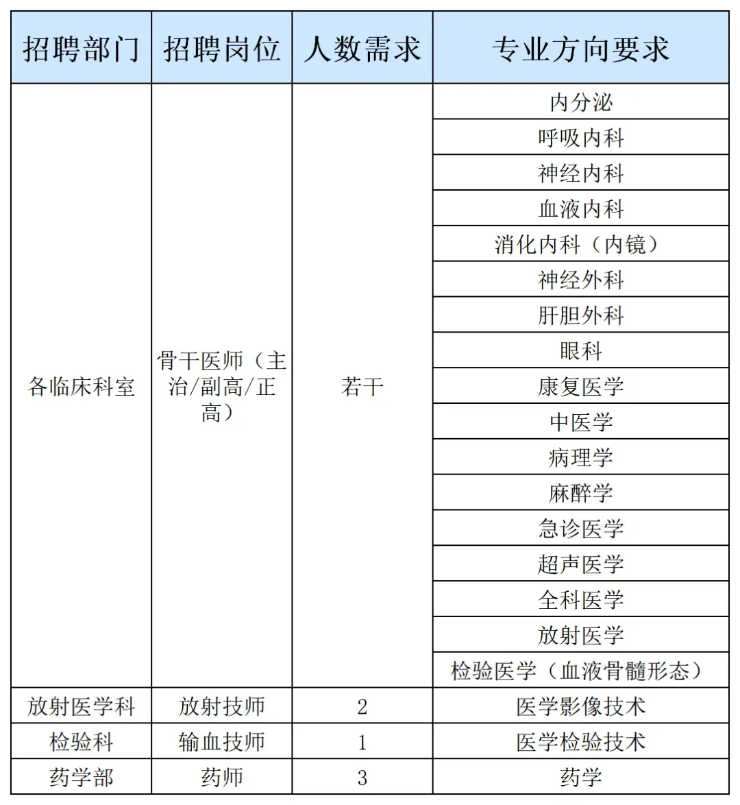 因业务发展需要,医院现诚聘各类社会人才和校园人才。