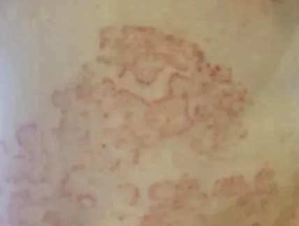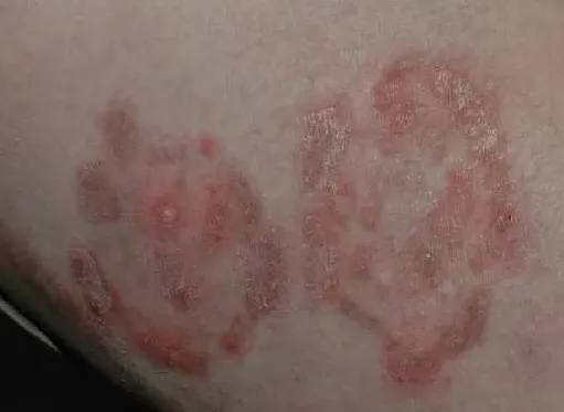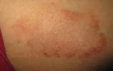 体股癣主要的视觉特征在于皮损的形态变化。在发病初期,皮肤上通常会出现红色的丘疹、丘疱疹或小水疱,这些微小的病灶随后会逐渐向四周扩散,形成具有明显边界的红斑。随着病情发展,皮损会呈现出“环状”或“半环状”结构。这种皮损的边缘往往隆起且炎症明显,常伴有脱屑、水疱或结痂;而皮损的中央部位则往往有自愈倾向,炎症消退,可能会留下色素沉着。这种“边缘活跃、中央消退”的现象是体股癣主要的皮损特征。
