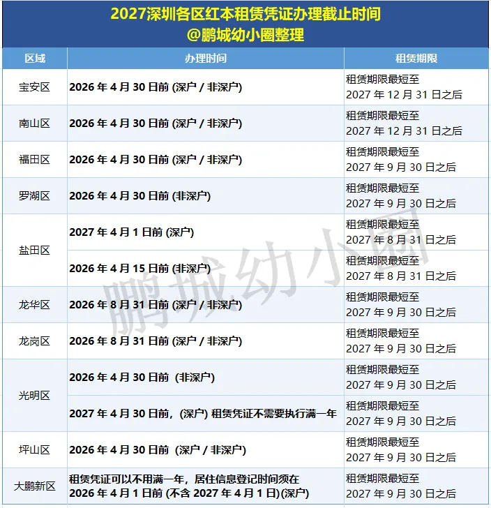 现在我们汇总了2027年深圳各区“红本”最晚办理截止日期,要是还没有办理的,可以抓紧时间了!👇