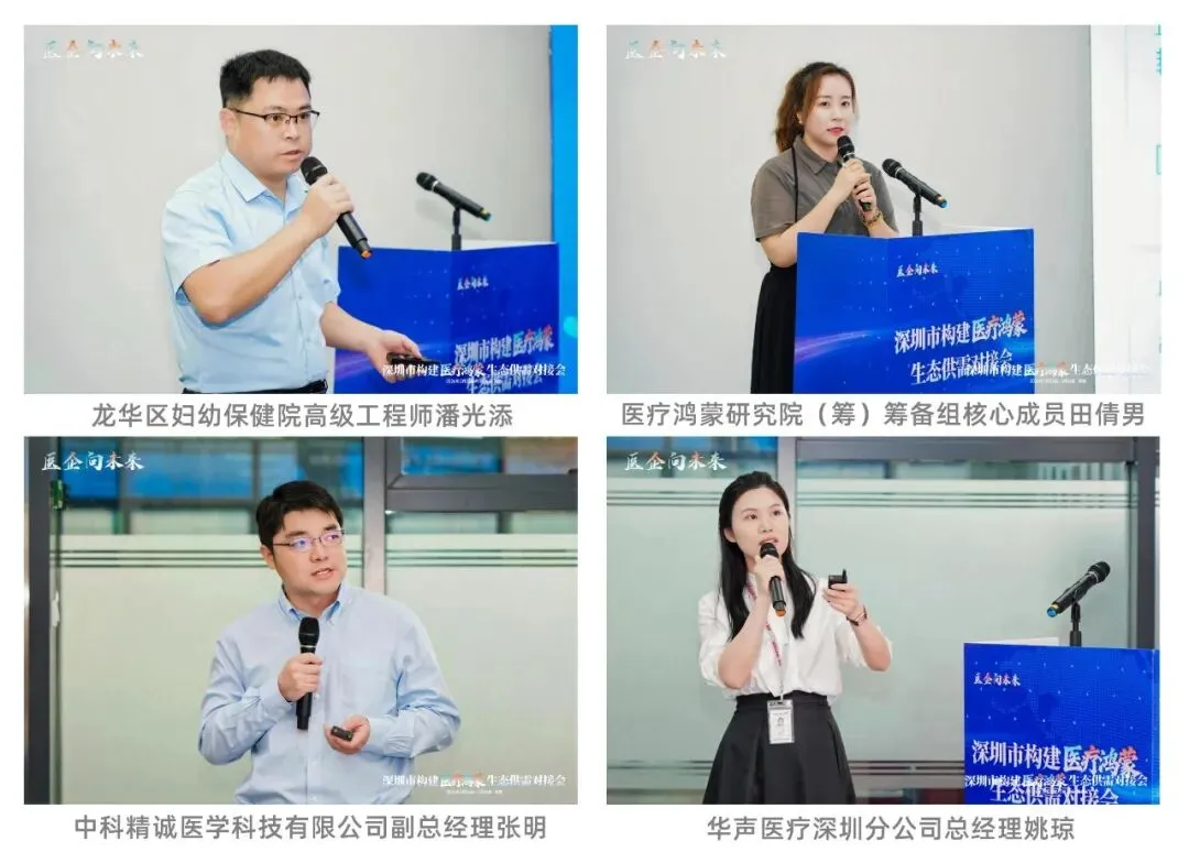 南方医科大学深圳医院院长周宏伟以“医企协作——推动器械创新与转化”为题,分享了医院在临床需求牵引研发、多中心研究赋能产品、真实世界数据应用等方面的探索经验。龙华区妇幼保健院高级工程师潘光添从区级医院视角分享了设备采购管理实践,强调合规、高效、精准的采购流程对医院和企业的重要意义。深圳市医疗鸿蒙研究院(筹)筹备组核心成员田倩男介绍了鸿蒙生态在医疗领域的布局设想,表示将通过操作系统赋能医疗器械,构建全新的智慧医疗生态。深圳中科精诚医学科技有限公司副总经理张明介绍了“含镁可降解高分子骨修复材料”的研发历程与临床应用,展示了国产创新材料在骨科修复领域的突破性进展。华声医疗深圳分公司总经理姚琼分享了专科专用临床超声的创新应用,为绿色麻醉和精准诊疗提供了新思路。