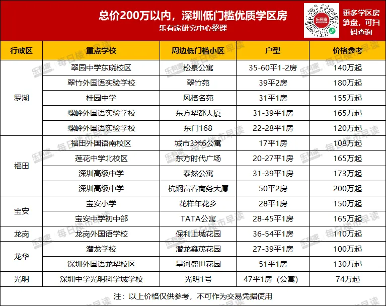 预算有限也有希望读名校!乐有家研究中心盘点发现,在罗湖、福田、宝安等多个城区,有一批总价在200万元以内、且配套优质教育资源的“上车盘”。