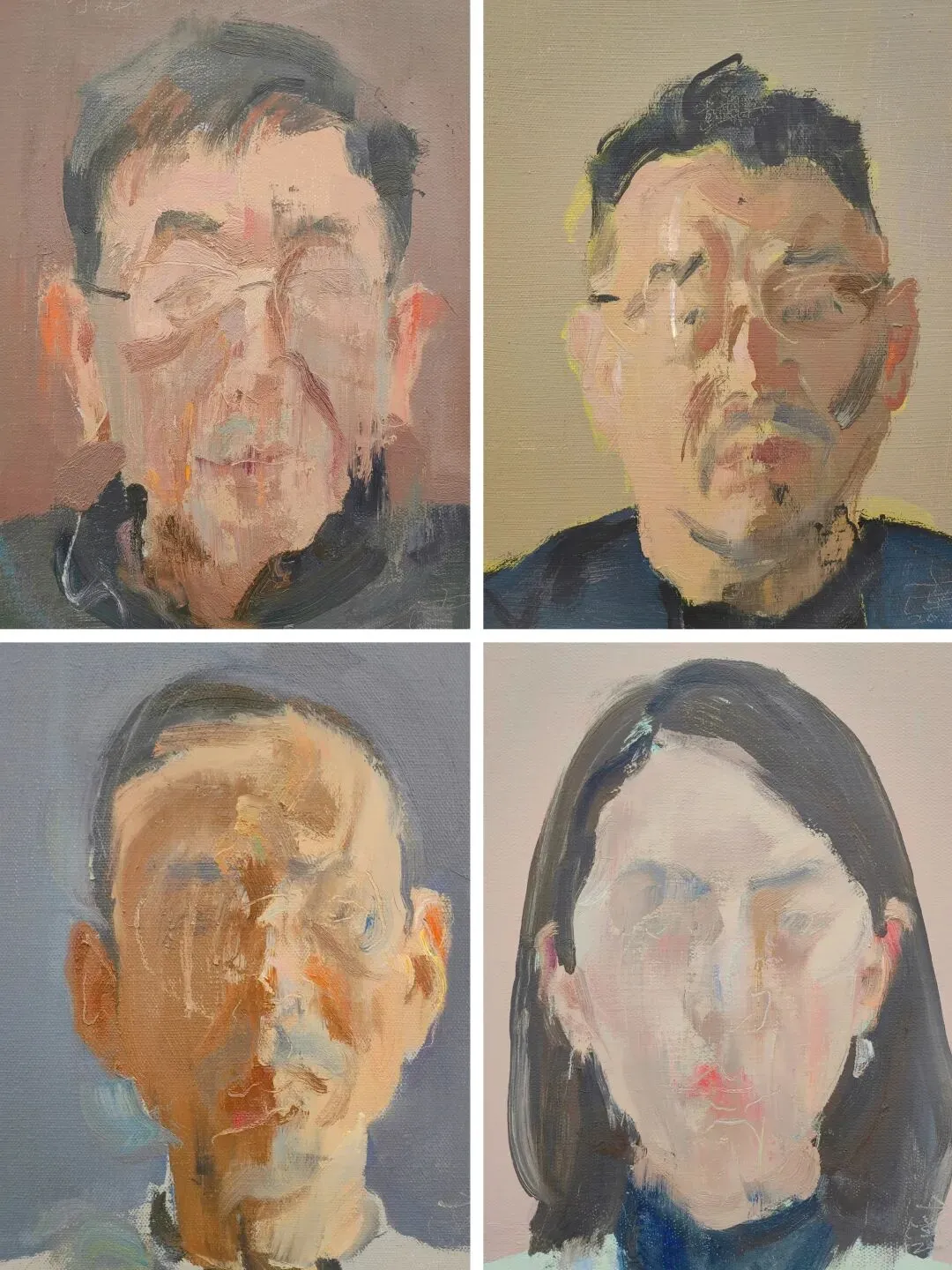 以极致精细、毫发毕现的写实风格著称的冷军,也成为了童雁汝南的模特,当他看到作品时直言,这样在人脸上做写意的方式,需要极强的画面掌控力。一个极致写实,极尽精微;一个写意写心,舍貌取神,两种截然不同的创作路径在此相遇,也让肖像艺术的更多可能被看见。