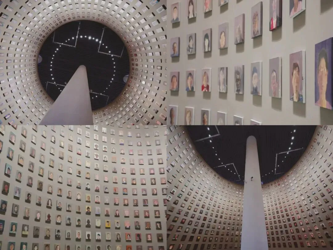 展厅最出彩的,无疑是中央这片环形围合的空间设计。环形本身自带一种闭环、循环、无始无终的意味,一踏入其中,四周密密麻麻排布的1200幅肖像作品顺着高耸的展墙层层环绕铺开,瞬间让人联想到石窟千佛洞的气象,被无数张面孔静静包围。于这空间中一圈圈缓步走看,仿佛是在观相、转相、破相,而如此庞大数量的作品集中呈现,也将艺术家数十年如一日的坚持与积淀,化作极具震撼力的视觉力量,如同千佛洞历经漫长岁月沉淀而成的造像一般,厚重而动人。这样的布局也恰好呼应了他始终强调的 face to face,让人真正置身其间,与画中面孔形成面对面的凝视与对话。展览中还设有影像记录,我们能看到不同被画者见到自己肖像时的真实感受。其中不乏各地美术馆馆长、批评家、威尼斯双年展策展人、知名运动员以及时尚领域的从业者等等。而最让人意外的,是超写实画家冷军的出现。