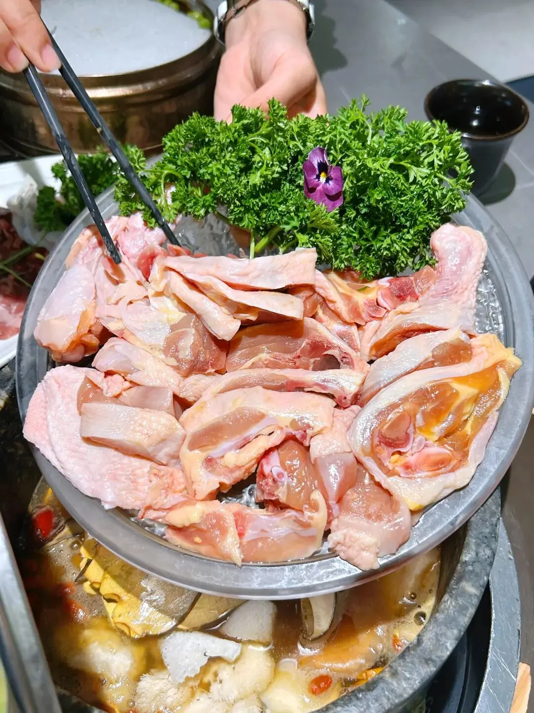 必须要夸一夸招牌见手青,老老实实煮够15分钟再动筷子,入口那叫一个嫩滑,鲜美的菌汁仿佛在舌尖绽放。还有那个黑虎虾滑😋,简直是鲜味的“炸弹”,好吃到让人想把眉毛都吞下去!