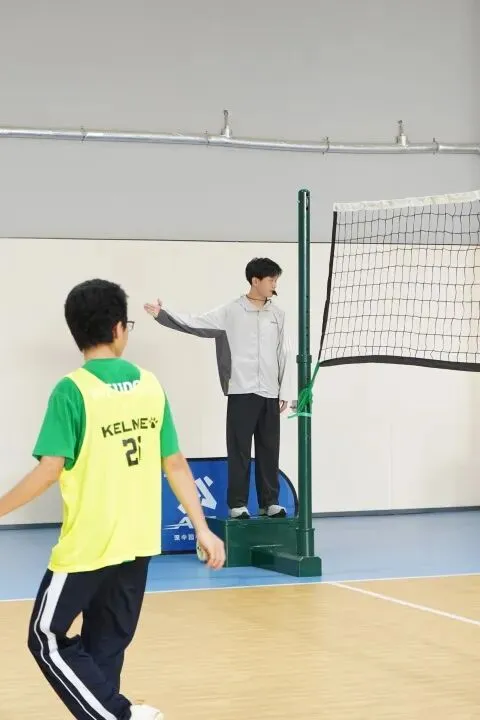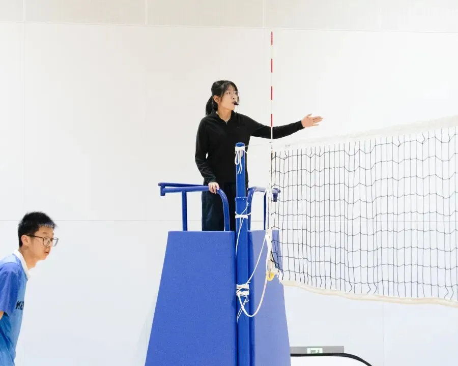 在这场覆盖全校的体育盛会中,不同背景与水平的学生都找到了属于自己的舞台。许多同学是首次踏上正式赛场,从垫球学起,在学长和老师的指导下迅速进步,勇敢挑战自我;而经验丰富的选手则承担起团队核心的角色,在实战中打磨技术,锤炼心态。场边的啦啦队与后勤支援队伍同样全心投入,设计助威口号、绘制应援海报,为赛场增添了无限的激情与创意。比赛不仅是技术的较量,更是个性与团队精神的盛大绽放。羞涩的新生在得分后握拳呐喊,找到了自信的表达;沉稳的学长在关键分时冷静指挥,展现了领导风范;队友间无需言语的默契配合,更是诠释了信任与协作的真谛。
