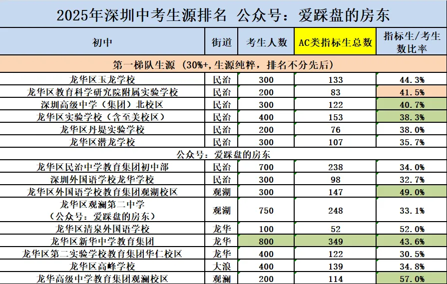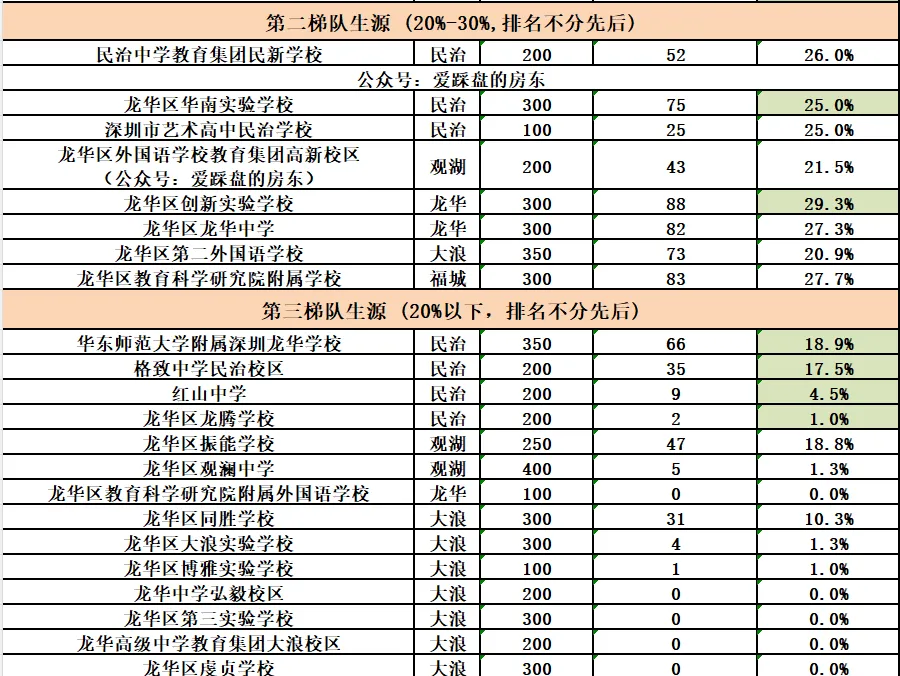 比如大名鼎鼎的深高北、龙华实验,比例都属于龙华前列