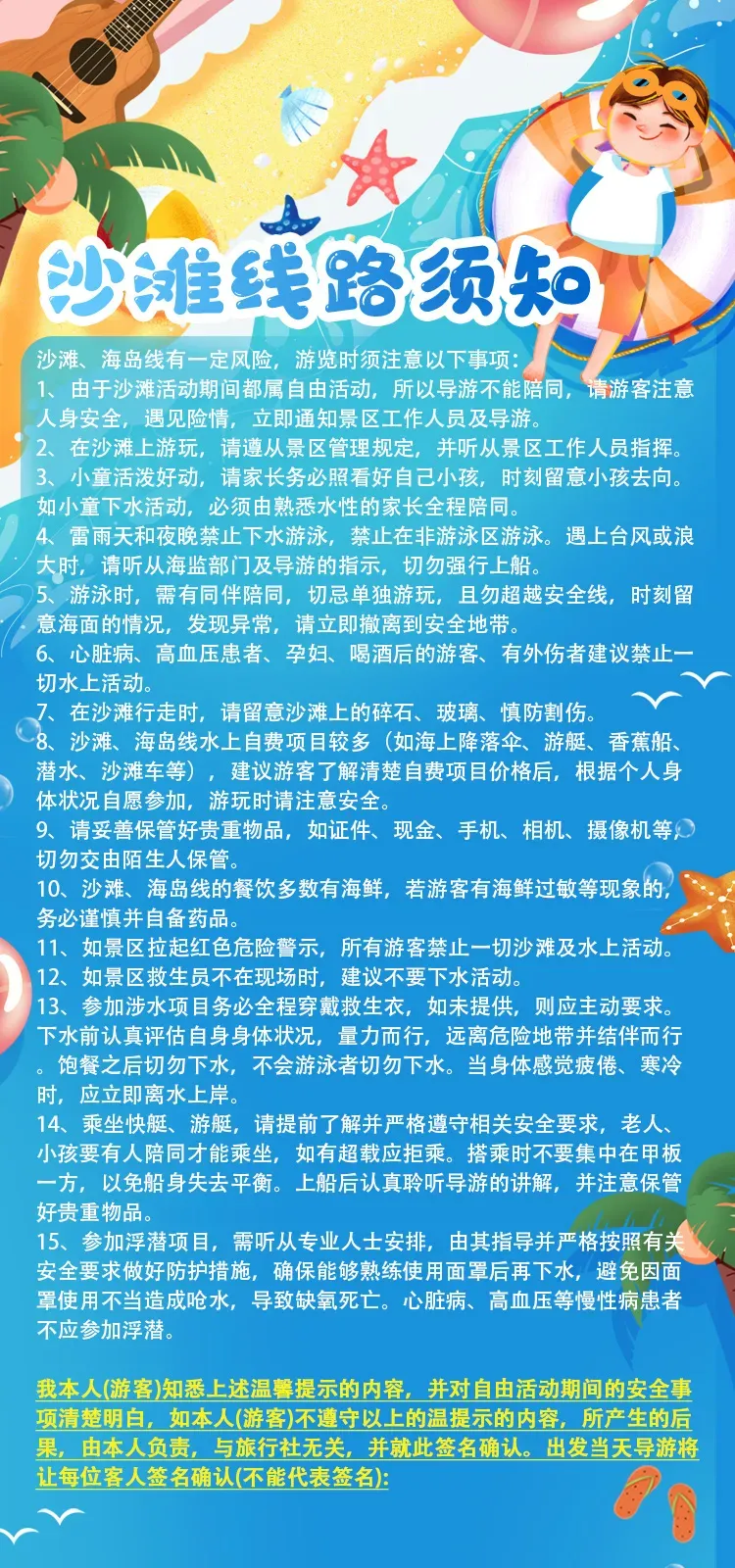涉及爬山、漂流、高原等特殊线路,以具体线路的说明为准。