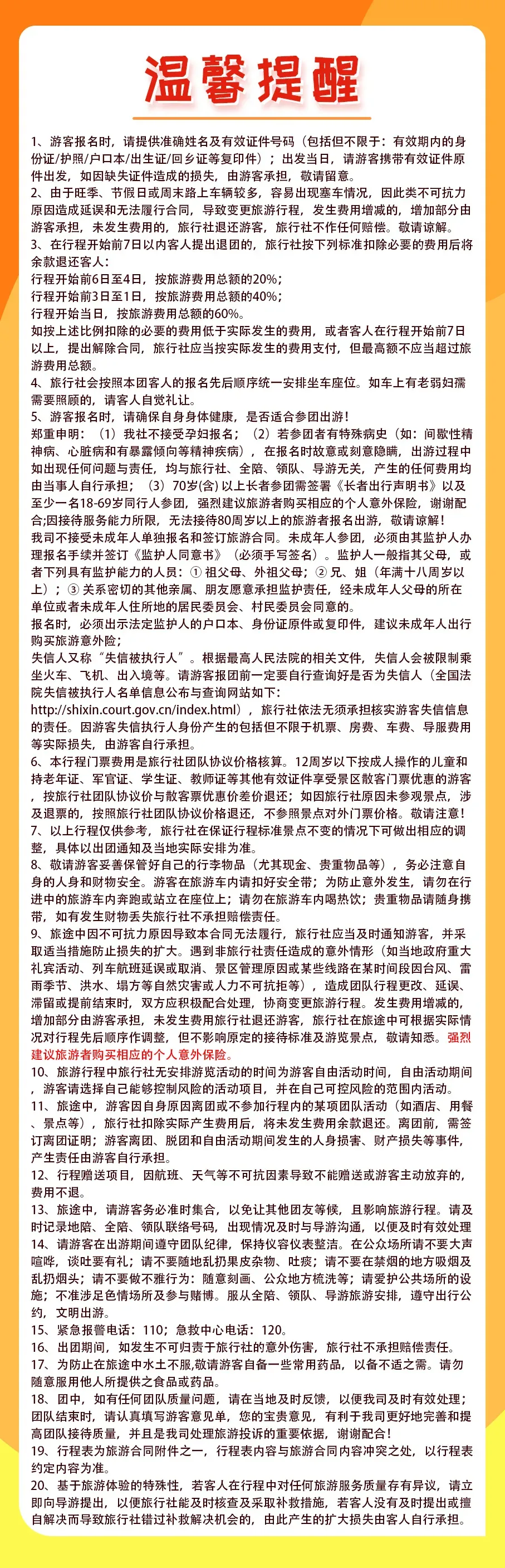 3、门票:行程所含景点首道大门票(园内园景点门票自理);