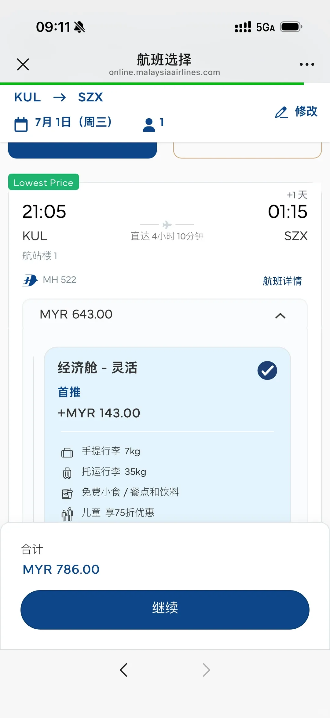 MH522 吉隆坡-深圳 21.05-01.15