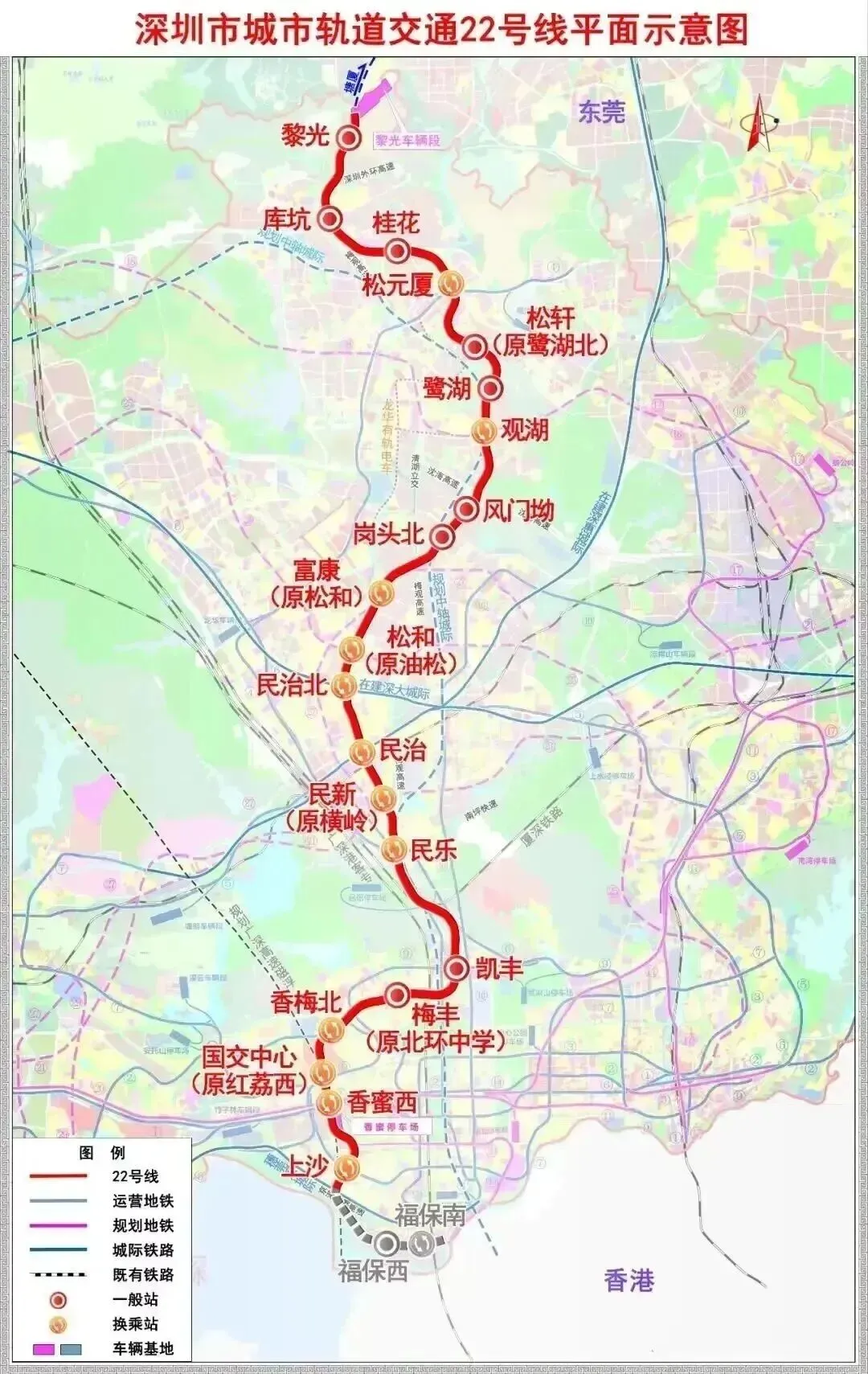 作为深圳市南北向骨干轨道交通线路,深圳地铁22号线起自📍福田区上沙站,途经福田区、龙岗区、龙华区,终至📍龙华区黎光站。