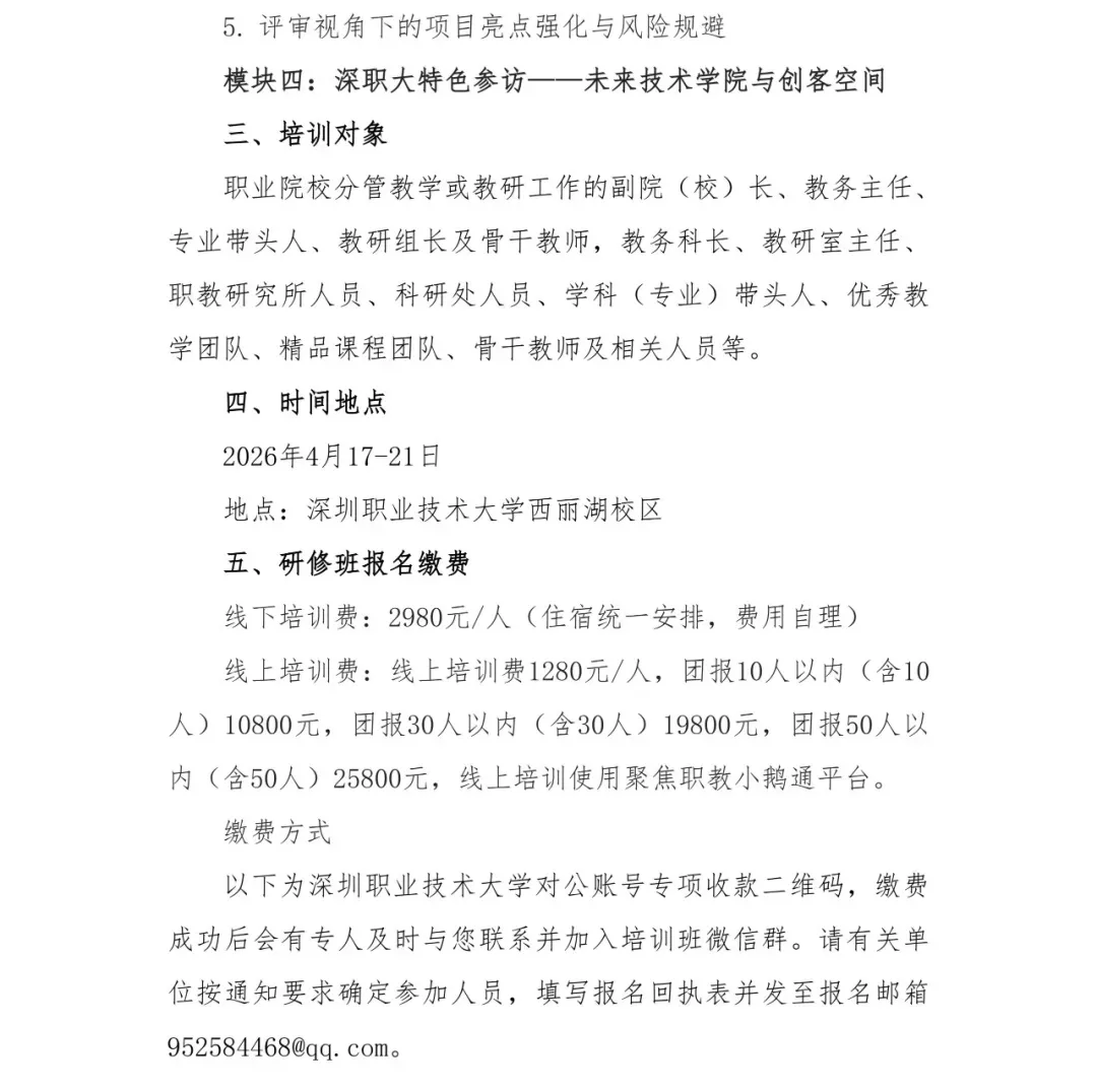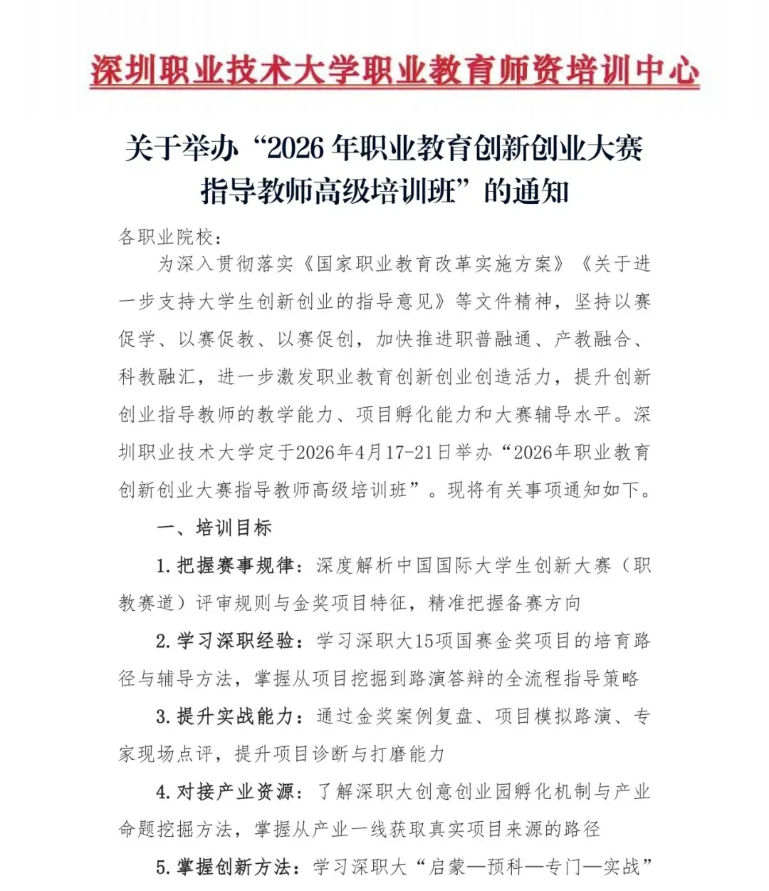 >深圳职业技术大学:2026年职业教育创新创业大赛指导教师高级培训班