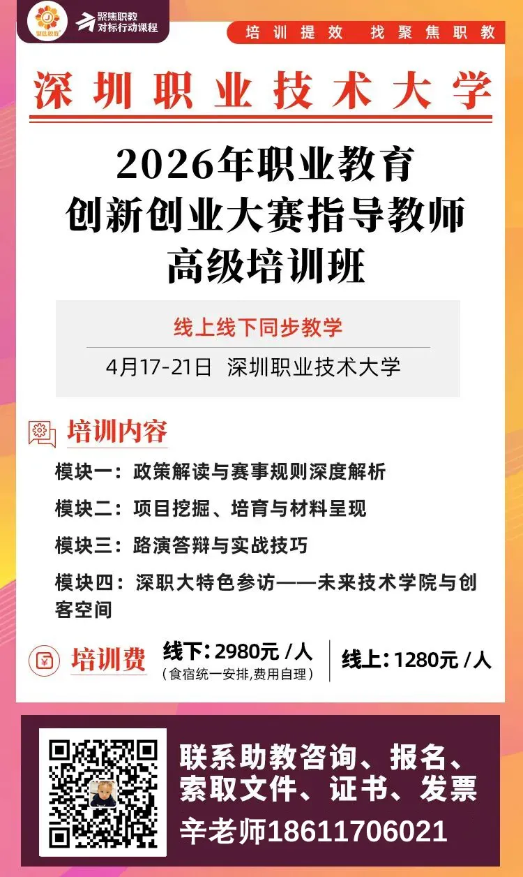 深圳职业技术大学:2026年职业教育创新创业大赛指导教师高级培训班