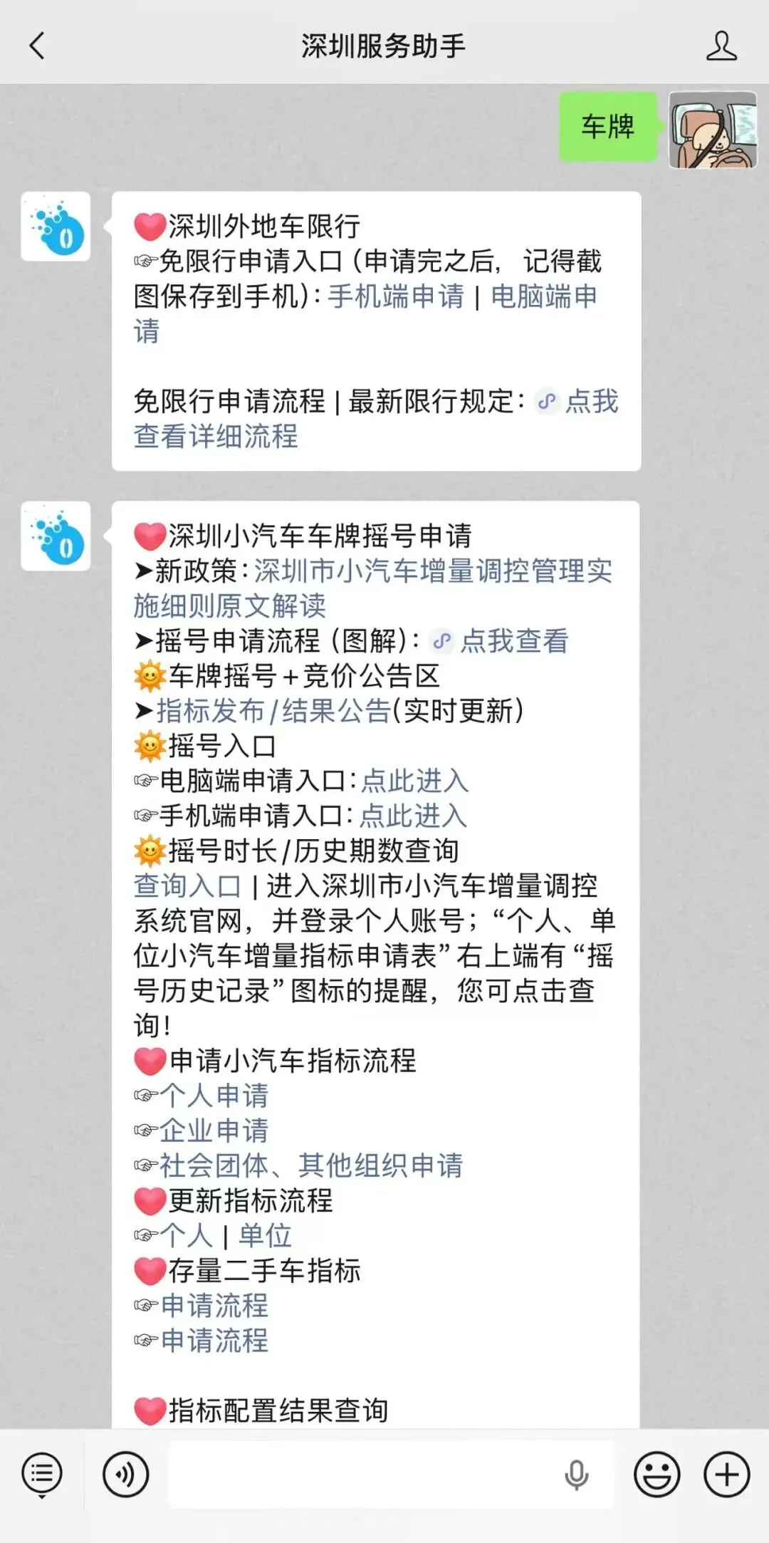 进入深圳服务助手聊天页面