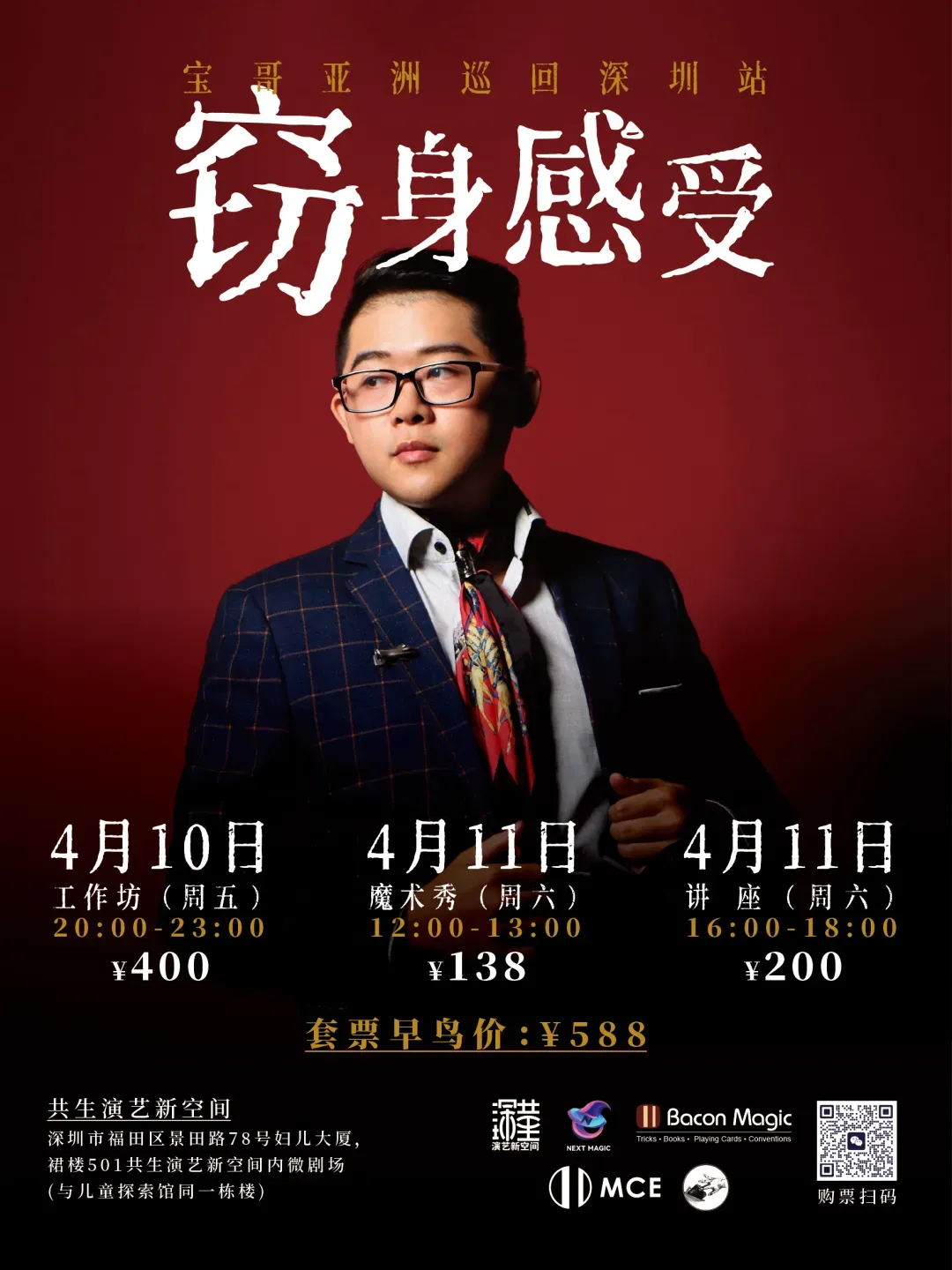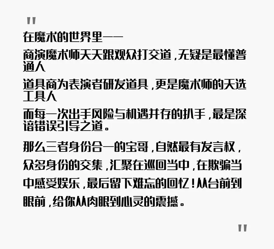 虽然不能剧透太多,但是这次共生空间给出了特别福利,可以用198的价格一天看两场魔术秀,除了宝哥的《一窃为你》之外,你还可以选择额外一场当天的奇幻秘社!