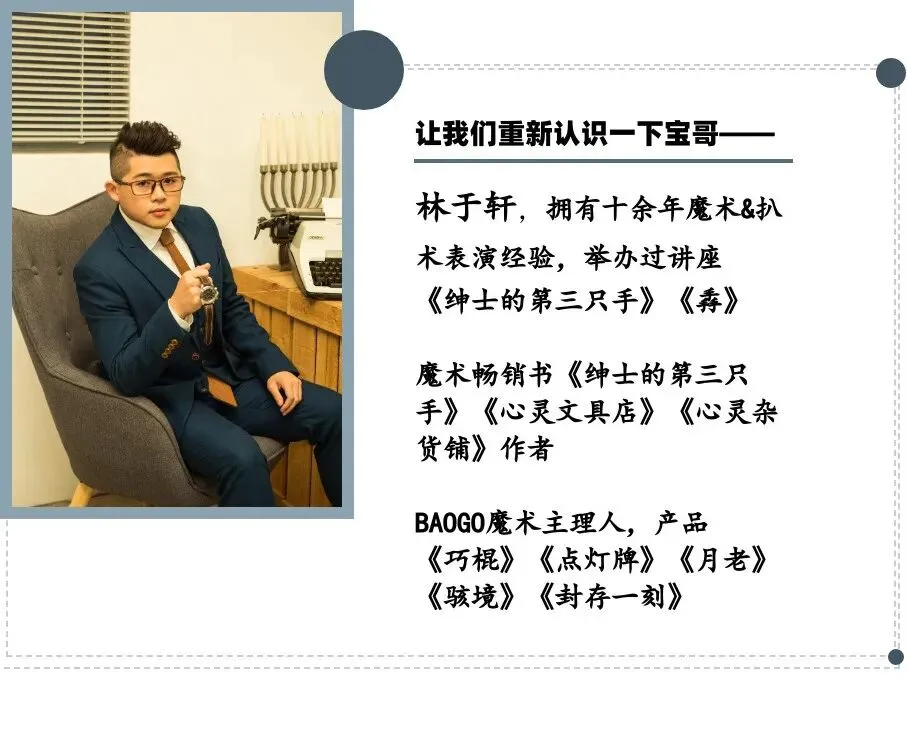 各大魔术大会都可以看到他的身影,在大会交流当中他每一次出招都会成为爱好者当中的焦点,但是他的讲座,工作坊,甚至个人魔术秀却是第一次了!