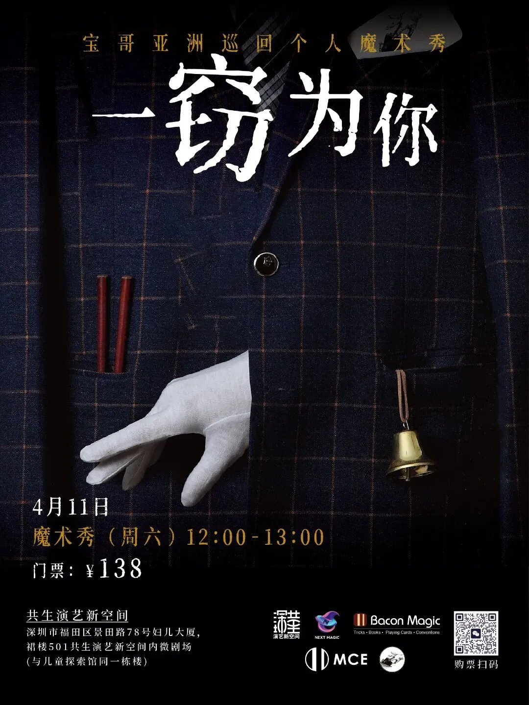 而这次,宝哥的巡回工作坊就是把这门技术化为表演艺术,作为出过专业扒手教学的宝哥,你可以放心安全地带上你所有的手表,手环,钱包,这次你将化身普通人来体验一次错误引导的美。