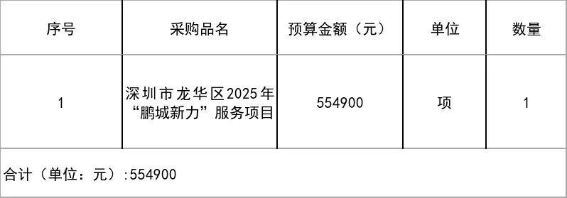 深圳市龙华区2025年“鹏城新力”服务需求方案