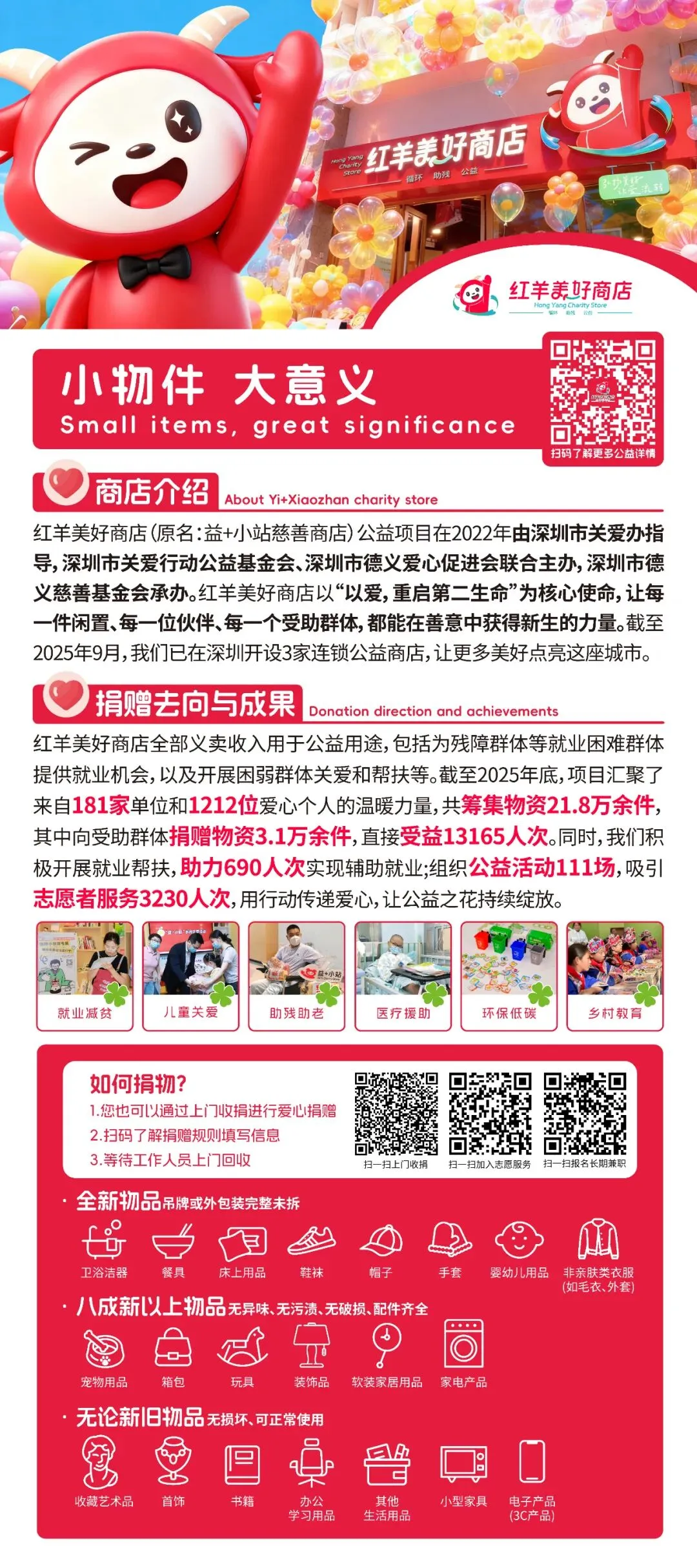 红羊美好商店目前全市有3家店,项目运营近3年,累计让21.8万件闲置物品重获新生,保障了690人次就业帮扶背后的尊严,焕发了1.3万人次受助者脸上的笑容。更让人动容的是北站社区店的经营团队:一位残障伙伴担任店长,一群社区全职妈妈、乐龄姐姐、大学生组成了活力满满的“融合团队”。在“弘扬美好,让爱流转”的理念下,红羊成了社区居民断舍离的好去处。门店部分收入和配套爱心物资捐赠用于本社区公益发展,并为本社区居民提供“家门口”的就业岗位——真正做到了“取之于社区,服务于社区”。