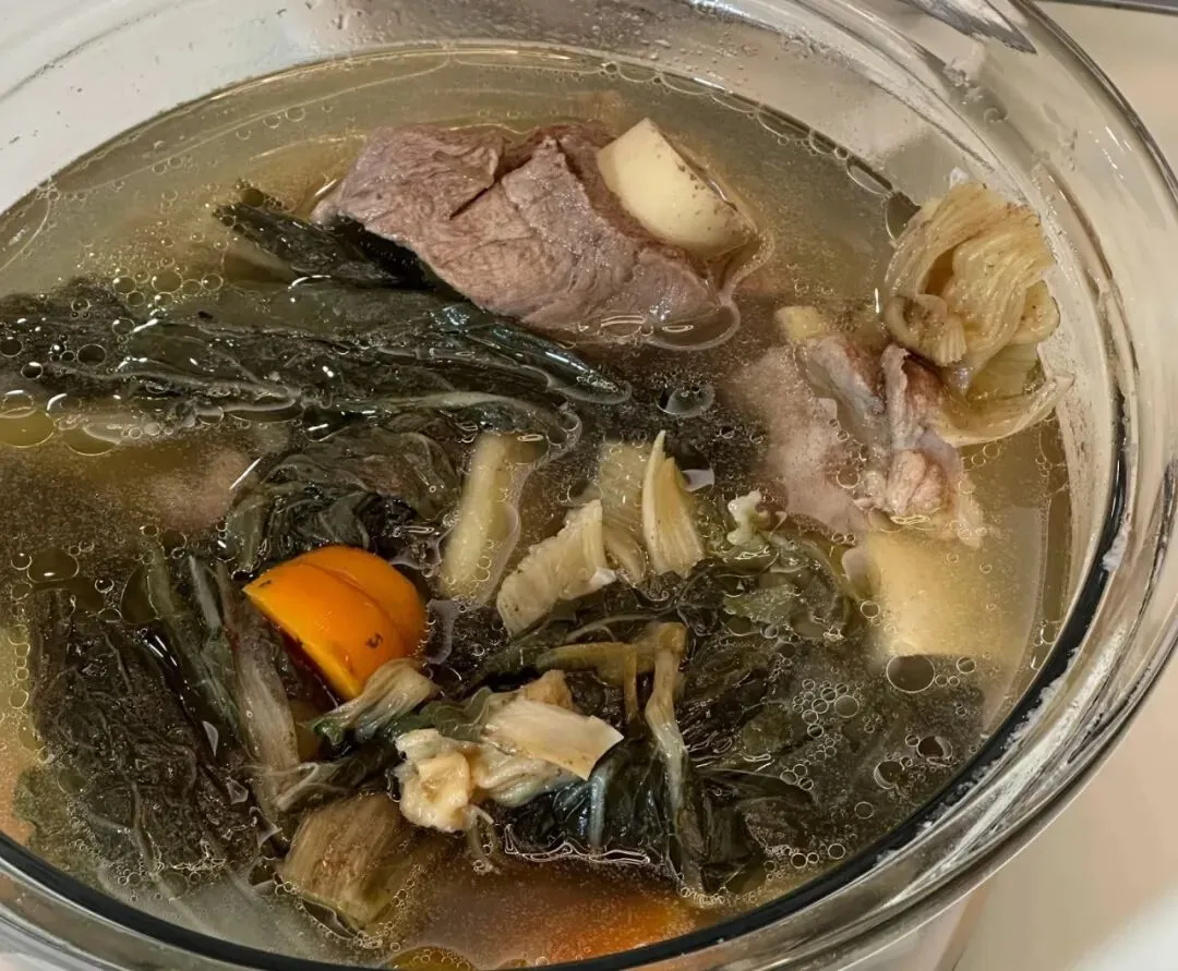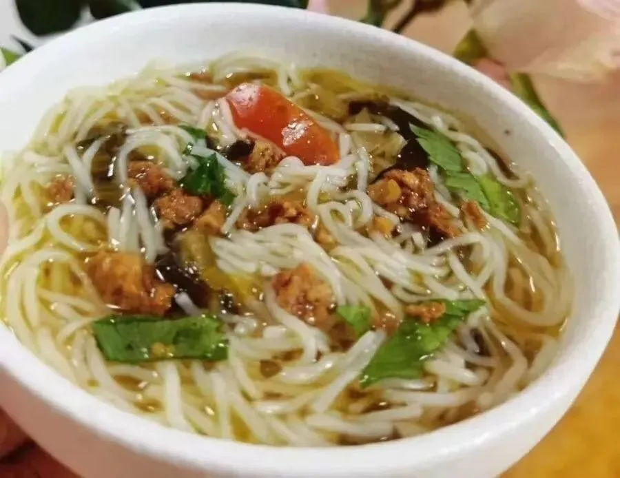 青菜瘦肉面条 水果:圣女果