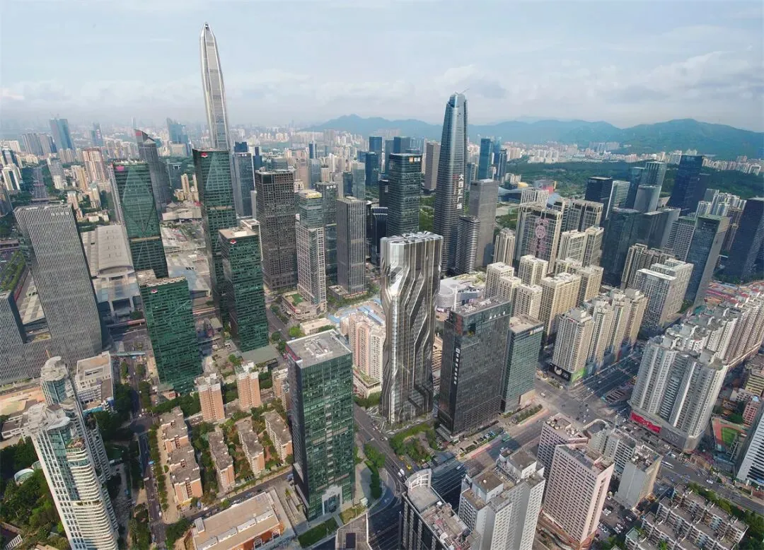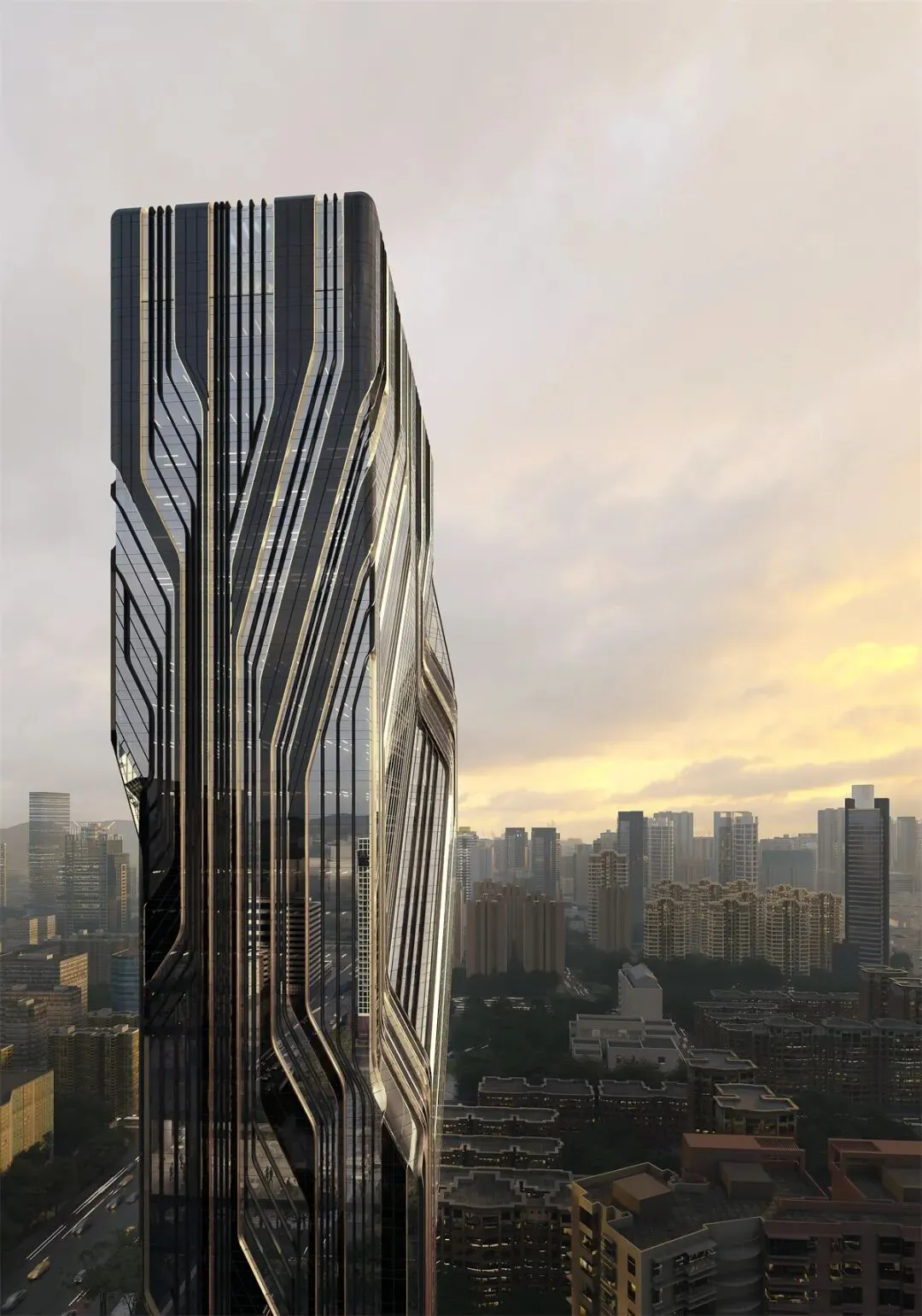 深圳金融科技研究院大厦(未来或称数字金融大厦)位于深圳市福田区彩田路与福华三路交汇处,地处福田CBD中央商务区核心地段。项目总投资约11.6亿元,总建筑面积约7.6万平方米,建筑高度199.75米,地上42层,地下4层,是集办公、科研为一体的超5A级数字货币研发产业智慧科研楼宇。建成后将作为中国人民银行办公大楼,重点承担数字人民币跨境支付和国际业务,助力福田区打造成为全产业链的数字经济先行示范区,为深圳市打造全球金融科技中心提供强力支撑。大厦由ZHA主导概念设计,本地设计单位包括中建西南设计研究院等。设计灵感源自“数字货币流动”与“生命之泉注入科技之芯”的概念,采用参数化设计技术,将建筑量体切割成不规则“花瓣”状与台阶状形态,形成标志性“变形金刚”。