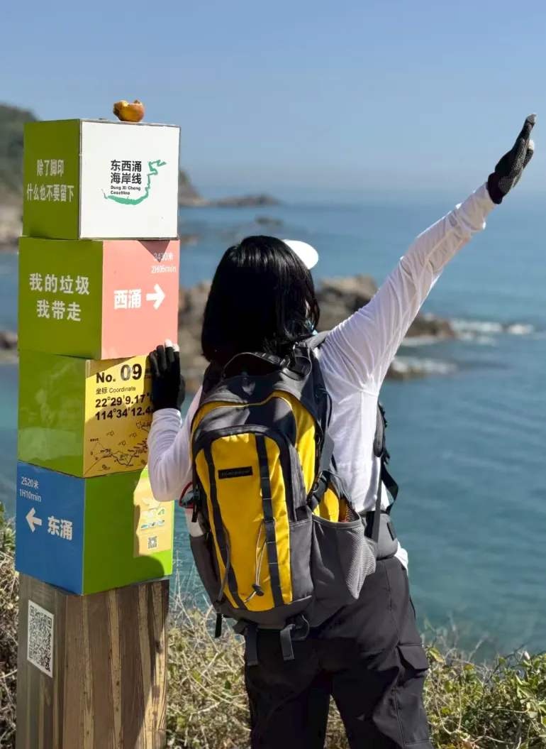 下午沿海岸线攀越山崖、踏过礁石,向西冲挺进,途中有红旗标志打卡点,到达天文台网红悬崖栈道上,在高点俯瞰这开阔的海岸线。随后跟着领队下山到达【西涌沙滩】