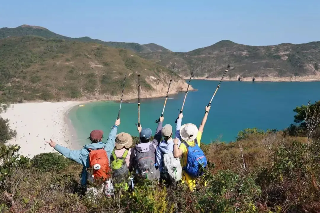 中午打卡麦径必去的景点,灵魂封面东坝。浏览地质公园园碑、六角岩柱、破边洲、标尖角,沿麦理浩径开始徒步经过【浪茄湾】,海浪侵蚀力量较弱,拥有可以媲美斐济群岛的海滩绵绵细沙,海水清澈,徒步到达【西湾露营】。