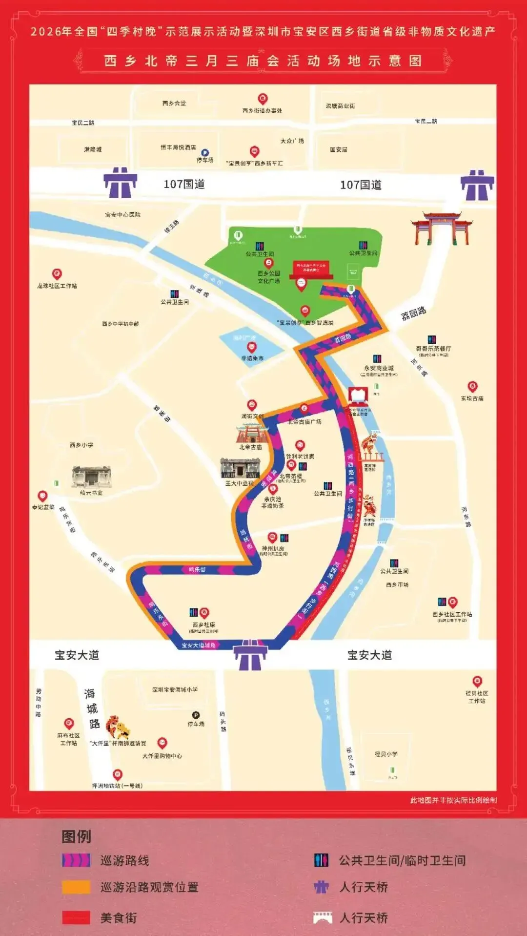 深圳人等了整整一年的民俗盛会,终于要来了。作为广东省级非物质文化遗产、2026年全国春季“村晚”三大示范展示点之一,西乡北帝三月三庙庙会,今年首次从“省字号”升级为“国字号”。去年,线下日均人流量达20万至50万人次,全网曝光量突破12.7亿,今年只会更热闹。