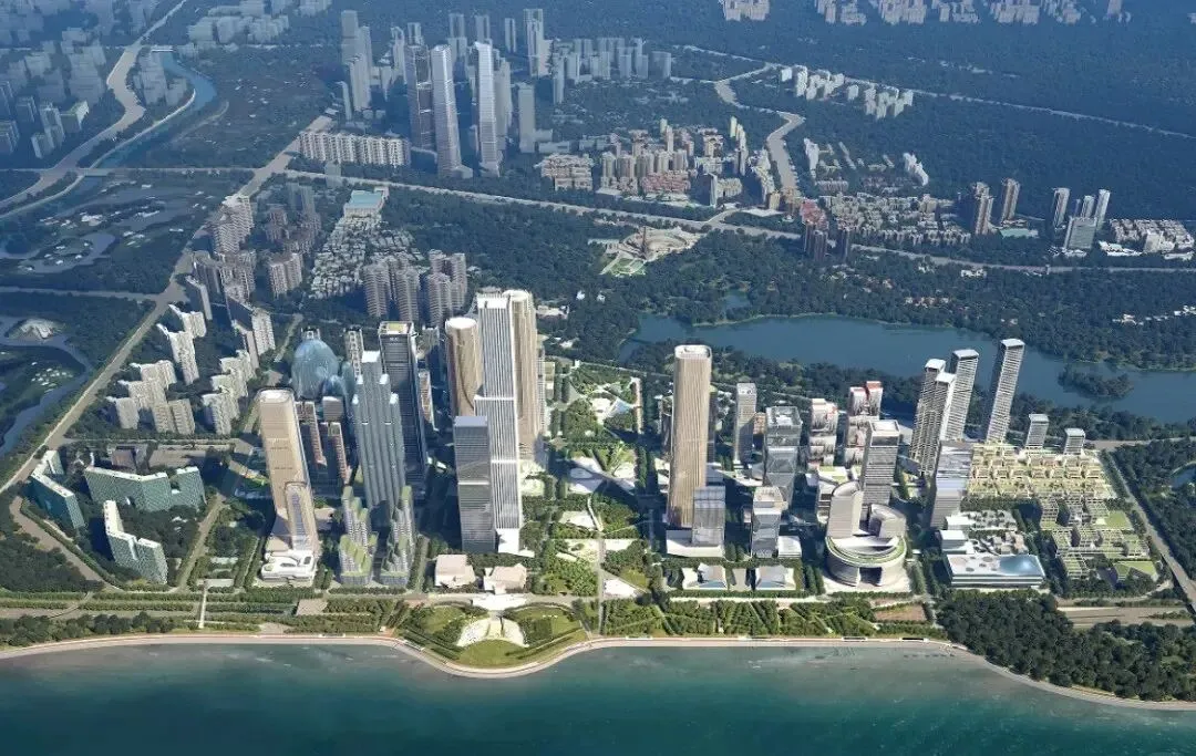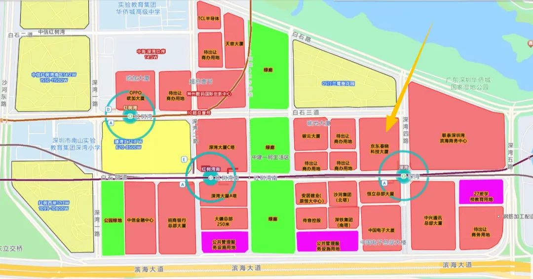 位置:深圳市南山区深圳湾超级总部基地,滨海大道、深湾一路等围合区域用地情况:2021年8月,深圳春晓花开科技有限公司以31.09亿元竞得商业服务业设施用地,出让年限30年,自持比例不低于60%。功能定位:集办公、酒店、商业、文化于一体,强调公共开放性与城市生态融合图片来自:奥雷·舍人建筑设计、SCD、深圳湾小V豪宅